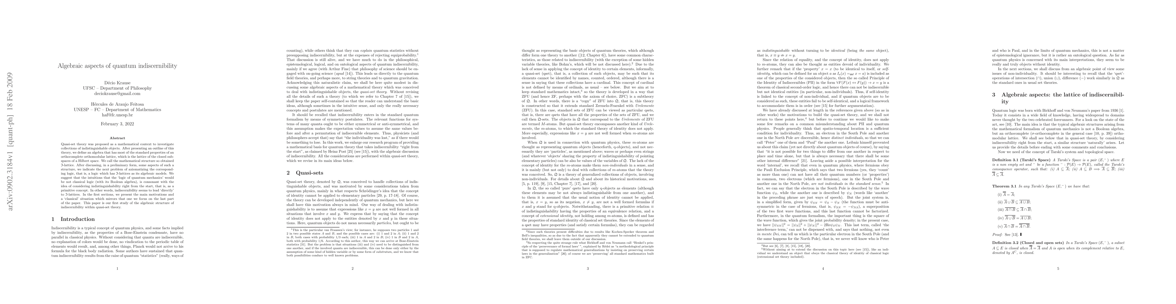Quasi-set theory was proposed as a mathematical context to investigate collections of indistinguishable objects. After presenting an outline of this theory, we define an algebra that has most of the standard properties of an orthocomplete orthomodular lattice, which is the lattice of the closed subspaces of a Hilbert space. We call the mathematical structure so obtained $\mathfrak{I}$-lattice. After discussing, in a preliminary form, some aspects of such a structure, we indicate the next problem of axiomatizing the corresponding logic, that is, a logic which has $\mathfrak{I}$-lattices as its algebraic models. We suggest that the intuitions that the `logic of quantum mechanics' would be not classical logic (with its Boolean algebra), is consonant with the idea of considering indistinguishability right from the start, that is, as a primitive concept. In other words, indiscernibility seems to lead `directly' to $\mathfrak{I}$-lattices. In the first sections, we present the main motivations and a `classical' situation which mirrors that one we focus on the last part of the paper. This paper is our first study of the algebraic structure of indiscernibility within quasi-set theory.