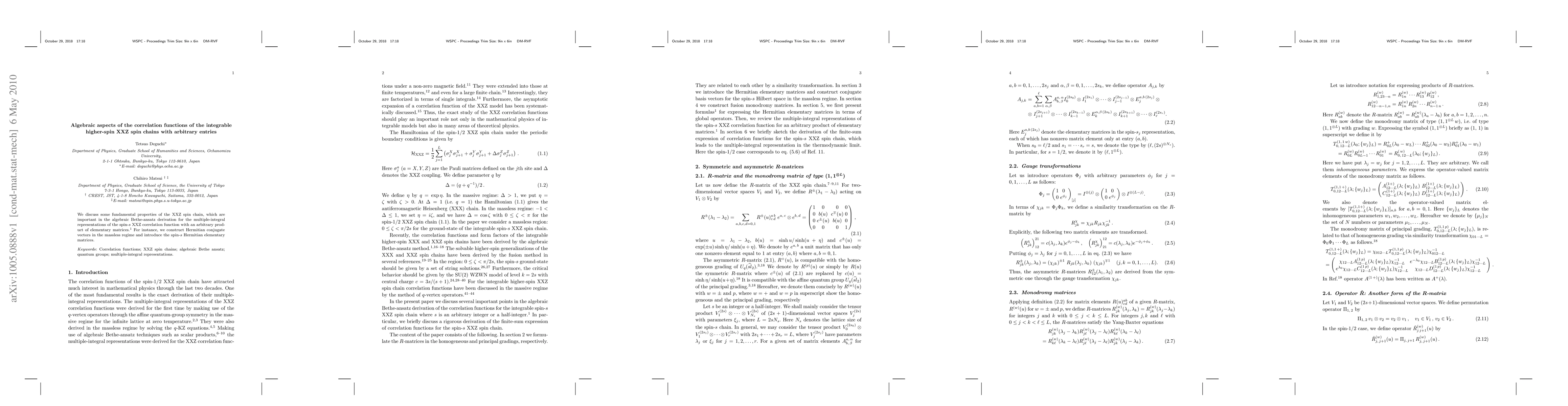 We discuss some fundamental properties of the XXZ spin chain, which are important in the algebraic Bethe-ansatz derivation for the multiple-integral representations of the spin-s XXZ correlation function with an arbitrary product of elementary matrices. For instance, we construct Hermitian conjugate vectors in the massless regime and introduce the spin-s Hermitian elementary matrices.
