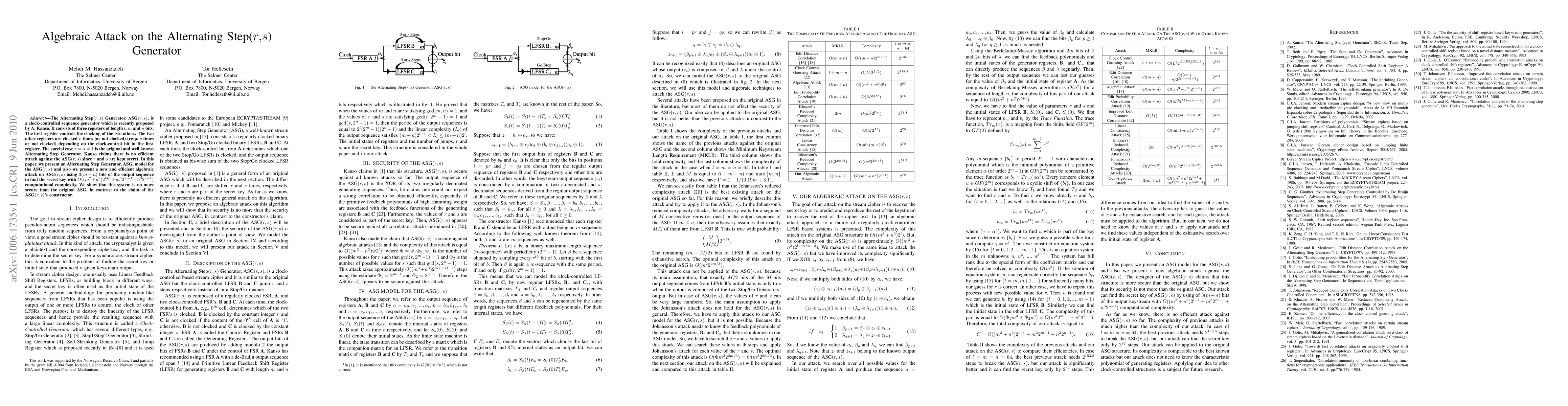 The Alternating Step(r,s) Generator, ASG(r,s), is a clock-controlled sequence generator which is recently proposed by A. Kanso. It consists of three registers of length l, m and n bits. The first register controls the clocking of the two others. The two other registers are clocked r times (or not clocked) (resp. s times or not clocked) depending on the clock-control bit in the first register. The special case r=s=1 is the original and well known Alternating Step Generator. Kanso claims there is no efficient attack against the ASG(r,s) since r and s are kept secret. In this paper, we present an Alternating Step Generator, ASG, model for the ASG(r,s) and also we present a new and efficient algebraic attack on ASG(r,s) using 3(m+n) bits of the output sequence to find the secret key with O((m^2+n^2)*2^{l+1}+ (2^{m-1})*m^3 + (2^{n-1})*n^3) computational complexity. We show that this system is no more secure than the original ASG, in contrast to the claim of the ASG(r,s)'s constructor.