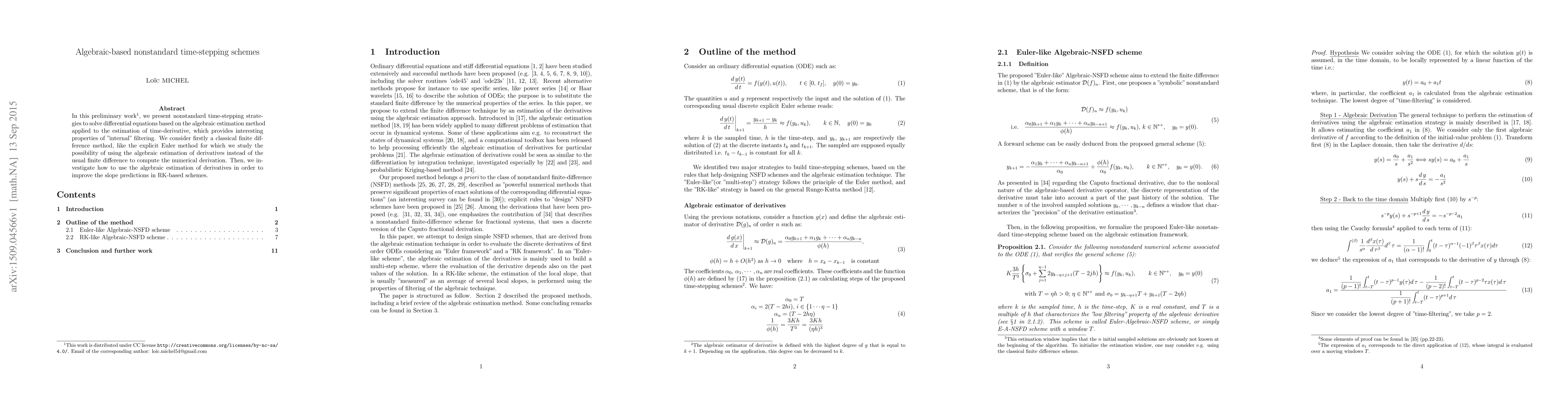Researchers developed nonstandard time-stepping schemes to solve differential equations using algebraic estimation of derivatives, offering improved filtering properties. These methods enhance numerical derivations in classical finite difference methods and RK-based schemes.