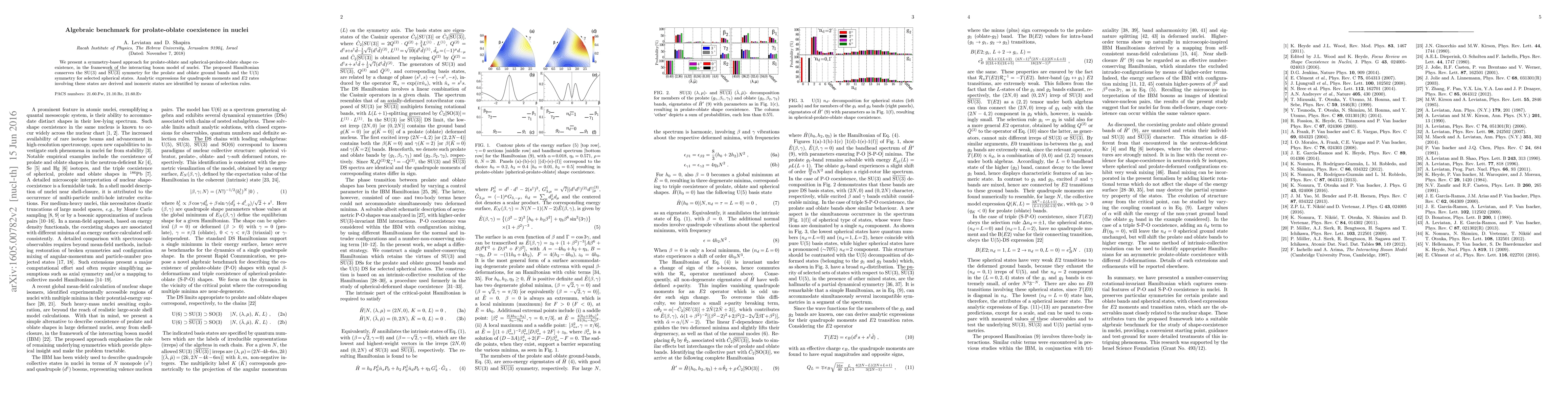 This paper introduces a symmetry-based Hamiltonian for analyzing prolate-oblate and spherical-prolate-oblate shape coexistence in nuclei using the interacting boson model, conserving SU(3), $\overline{\rm SU(3)}$, and U(5) symmetries. It derives analytic expressions for quadrupole moments and $E2$ rates, and identifies isomeric states via selection rules.