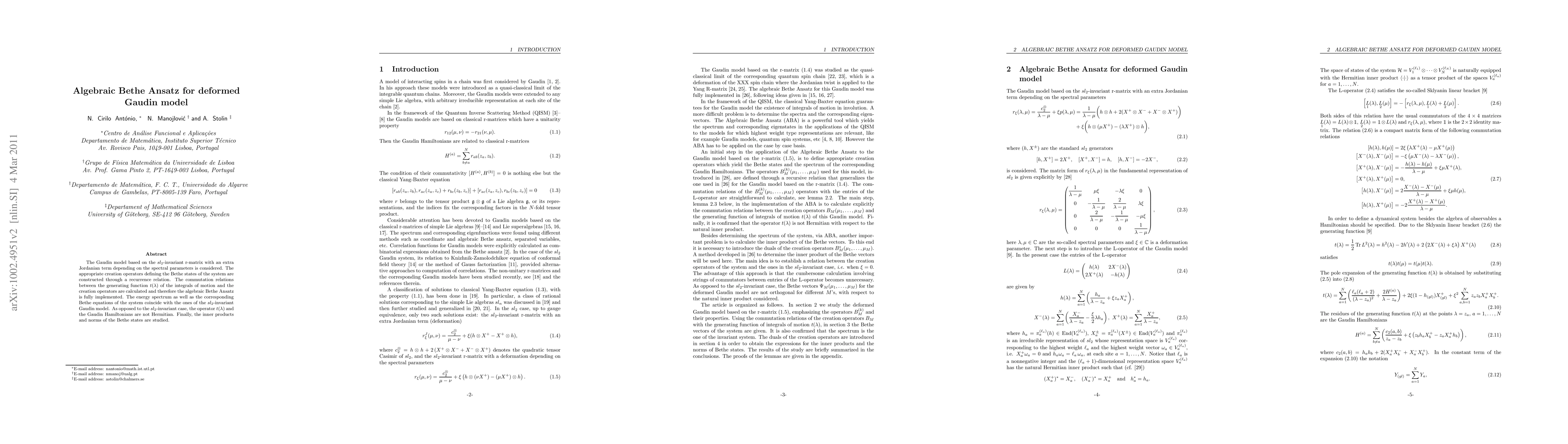 This paper implements the algebraic Bethe Ansatz for a deformed Gaudin model with a Jordanian term, constructing Bethe states via recurrence relations and deriving commutation relations. It finds the energy spectrum and Bethe equations match the sl_2-invariant Gaudin model, though the generating function and Hamiltonians are non-Hermitian. The study also investigates the inner products and norms of the Bethe states.