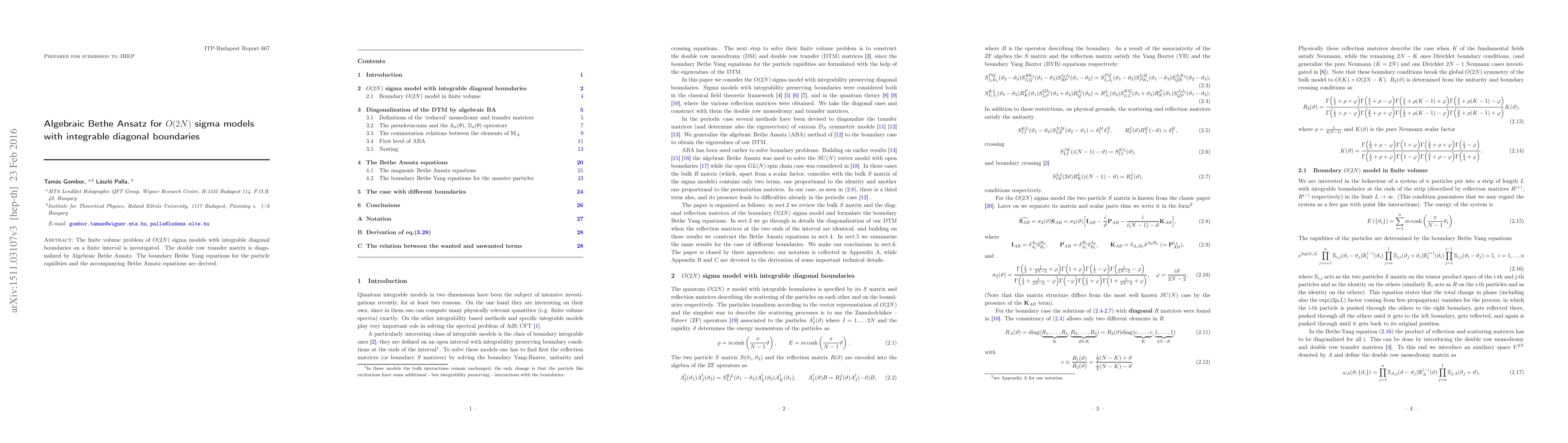 This paper investigates O(2N) sigma models with integrable diagonal boundaries using the Algebraic Bethe Ansatz, focusing on the finite volume problem. It derives the boundary Bethe Yang equations and the accompanying Bethe Ansatz equations through diagonalization of the double row transfer matrix.