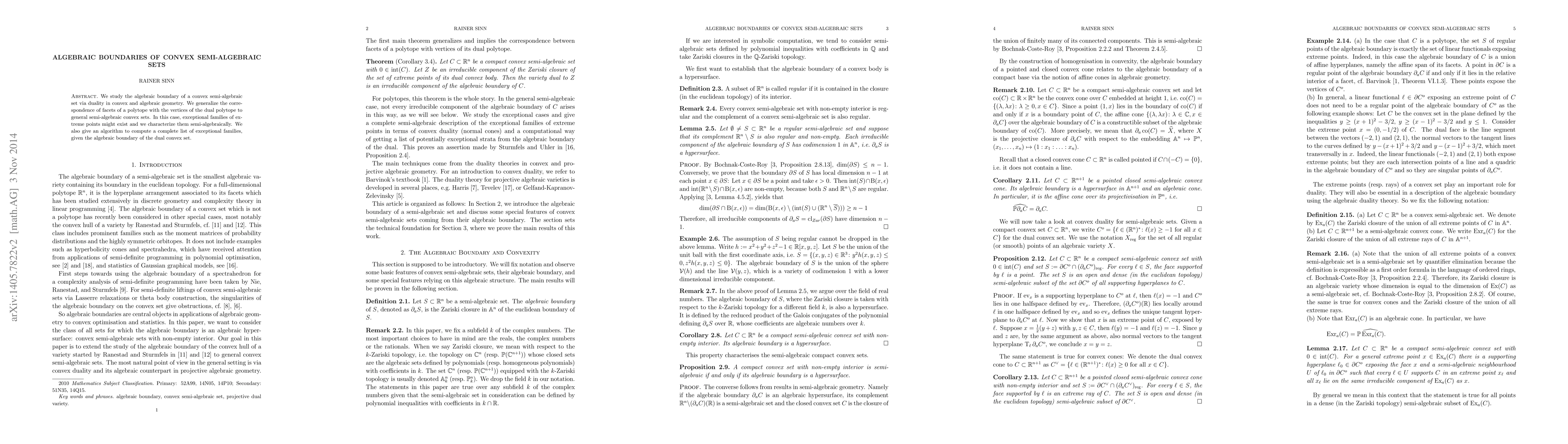 This paper explores the algebraic boundary of convex semi-algebraic sets using duality in convex and algebraic geometry, generalizing polytope facet correspondence to semi-algebraic convex bodies, and provides an algorithm to identify exceptional families of extreme points based on the dual set's algebraic boundary.