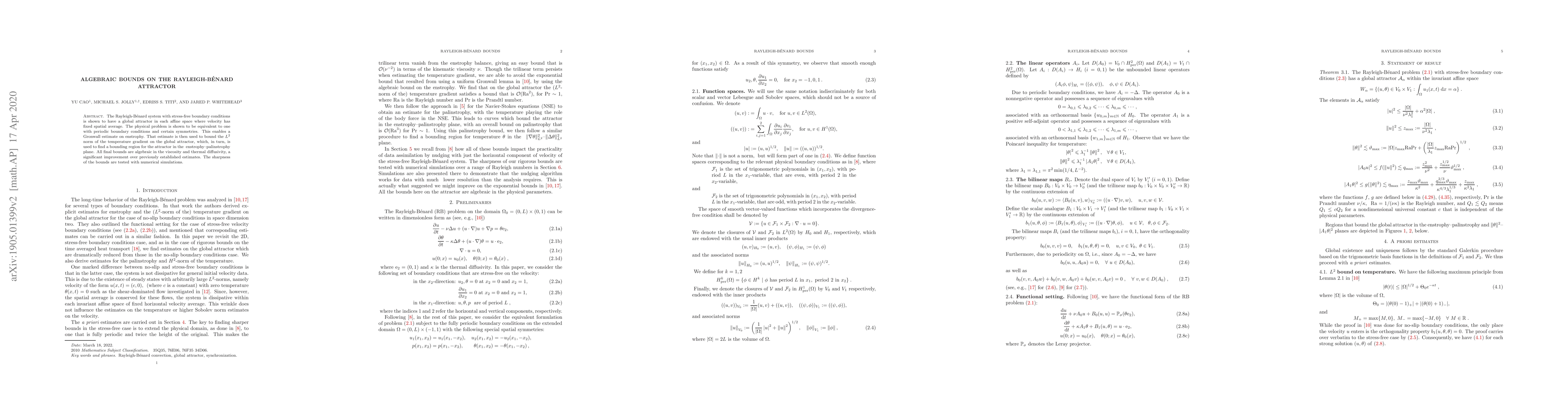 This research paper establishes algebraic bounds on the Rayleigh-Benard attractor, improving previous estimates with viscosity and thermal diffusivity terms.