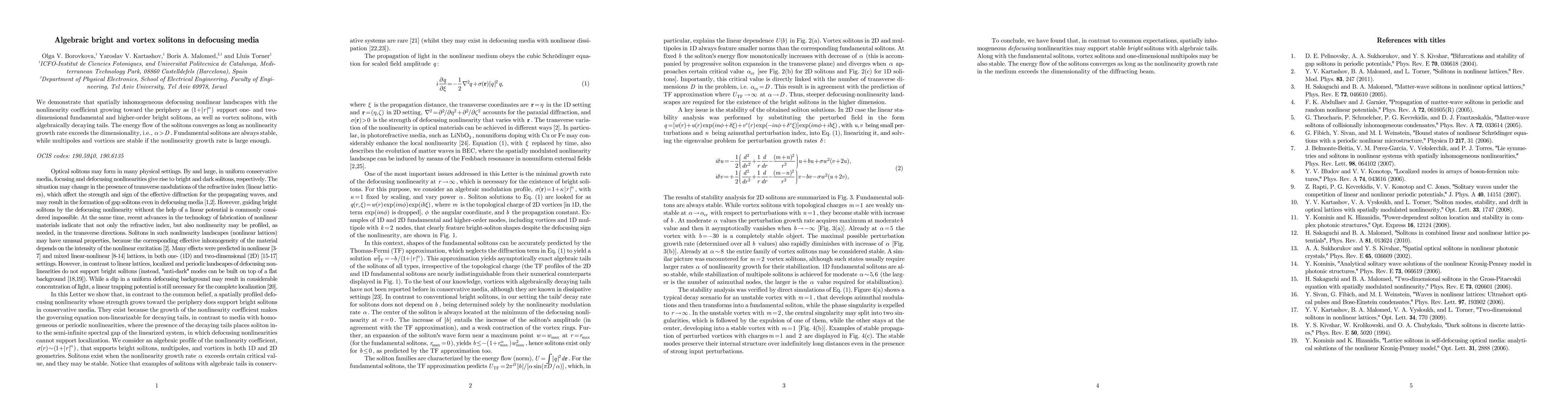 We demonstrate that spatially inhomogeneous defocusing nonlinear landscapes with the nonlinearity coefficient growing toward the periphery as [1+abs(r)]**a support one- and two-dimensional fundamental and higher-order bright solitons, as well as vortex solitons, with algebraically decaying tails. The energy flow of the solitons converges as long as nonlinearity growth rate exceeds the dimensionality, i.e., a>D. Fundamental solitons are always stable, while multipoles and vortices are stable if the nonlinearity growth rate is large enough.
