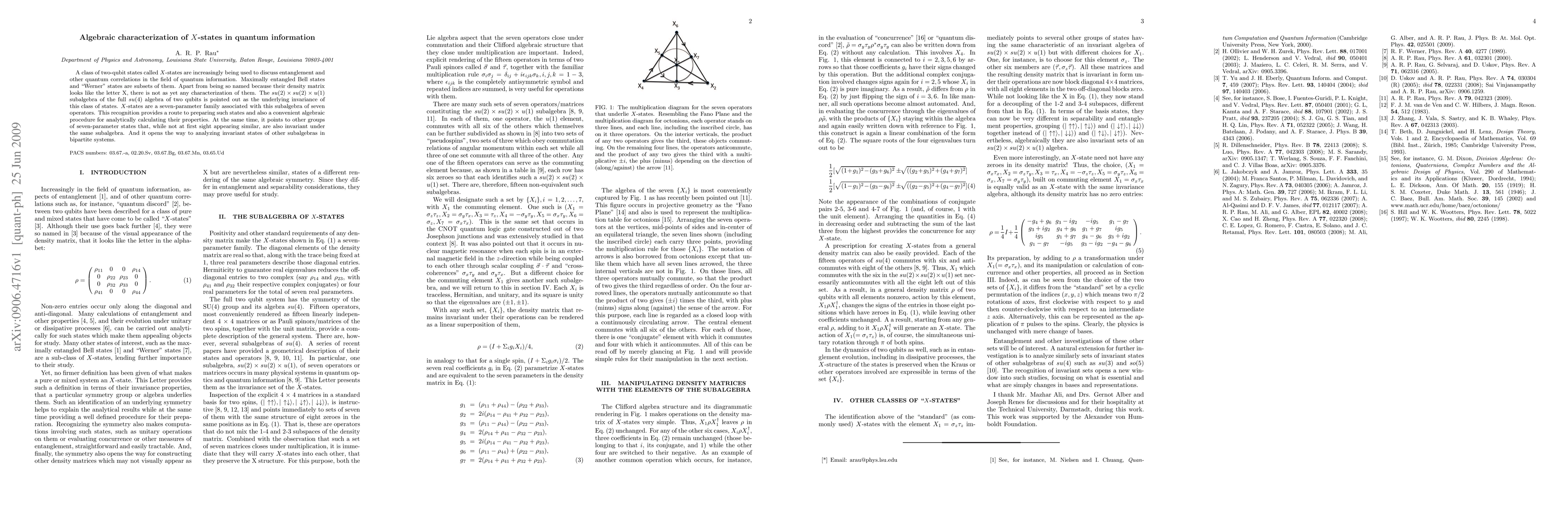 A class of two-qubit states called X-states are increasingly being used to discuss entanglement and other quantum correlations in the field of quantum information. Maximally entangled Bell states and "Werner" states are subsets of them. Apart from being so named because their density matrix looks like the letter X, there is not as yet any characterization of them. The su(2) X su(2) X u(1) subalgebra of the full su(4) algebra of two qubits is pointed out as the underlying invariance of this class of states. X-states are a seven-parameter family associated with this subalgebra of seven operators. This recognition provides a route to preparing such states and also a convenient algebraic procedure for analytically calculating their properties. At the same time, it points to other groups of seven-parameter states that, while not at first sight appearing similar, are also invariant under the same subalgebra. And it opens the way to analyzing invariant states of other subalgebras in bipartite systems.