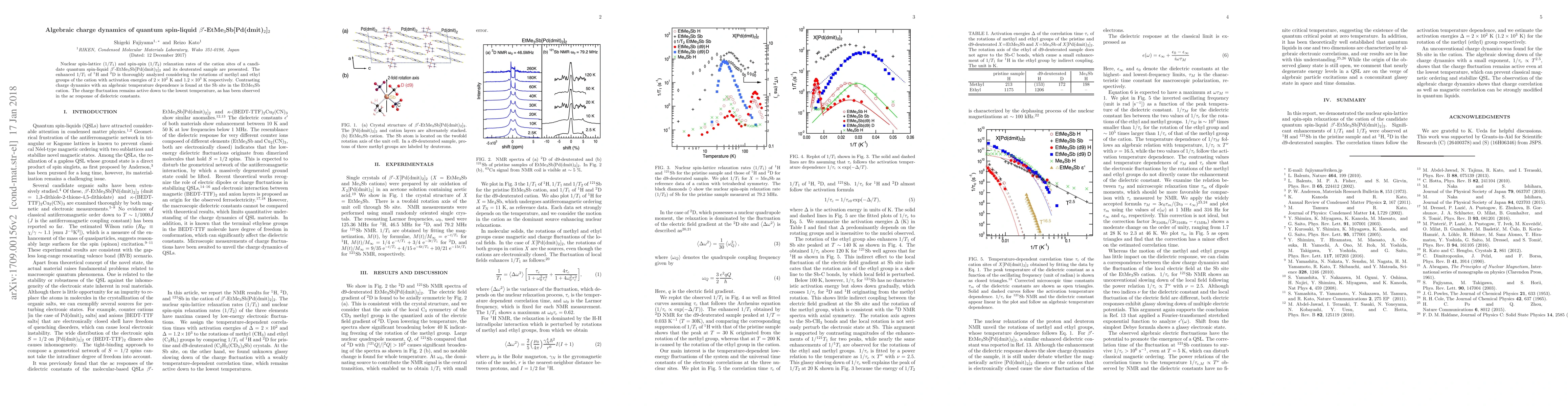 Single crystals of β'-EtMe3Sb[Pd(dmit)2]2 were prepared via air oxidation of X2[Pd(dmit)2] in an acetone solution containing acetic acid. NMR measurements were performed using small, randomly oriented single crystals. 1/T1 was obtained by fitting the magnetization, M(t), with specific formulas for 1H, 2D, and 121Sb NMR.