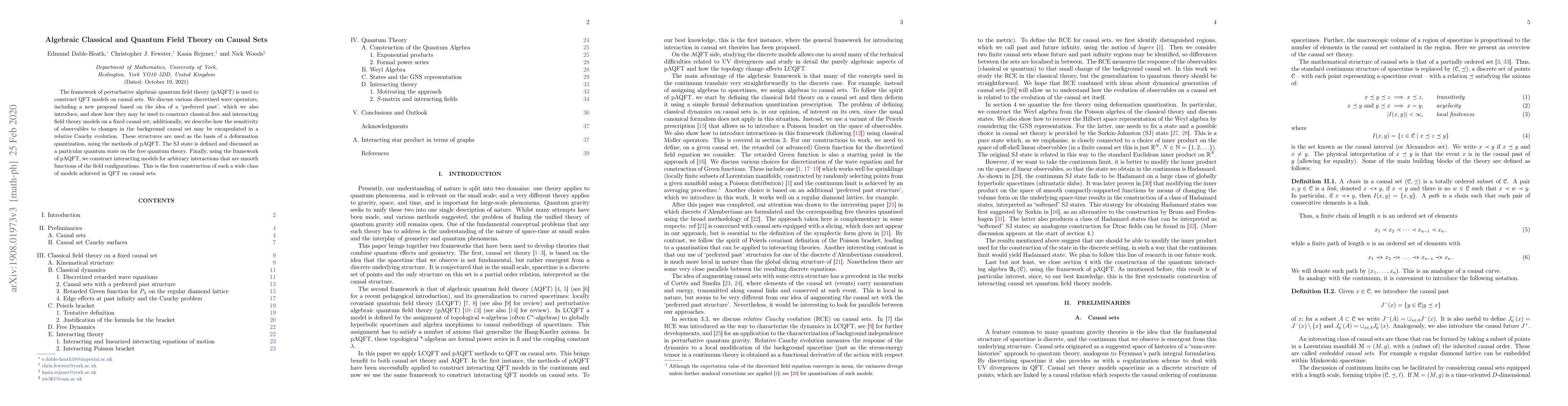 This paper constructs quantum field theory (QFT) models on causal sets using perturbative algebraic quantum field theory (pAQFT), introducing discretised wave operators including a 'preferred past' concept. It also develops classical field theories on causal sets and explores the sensitivity of observables to background changes via relative Cauchy evolution, culminating in a deformation quantization approach.