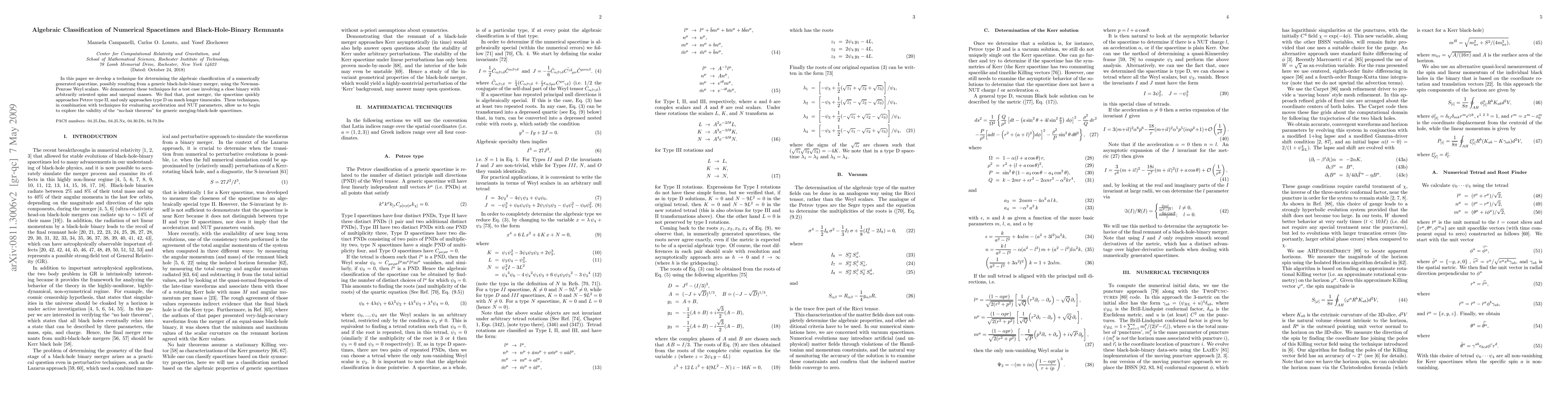 This paper introduces a method for classifying numerical spacetimes from black-hole-binary mergers using Newman-Penrose Weyl scalars, showing that post-merger spacetimes quickly become Petrov type II and only transition to type D over long periods. This classification aids in assessing the "no-hair theorem" for merging black-hole systems.