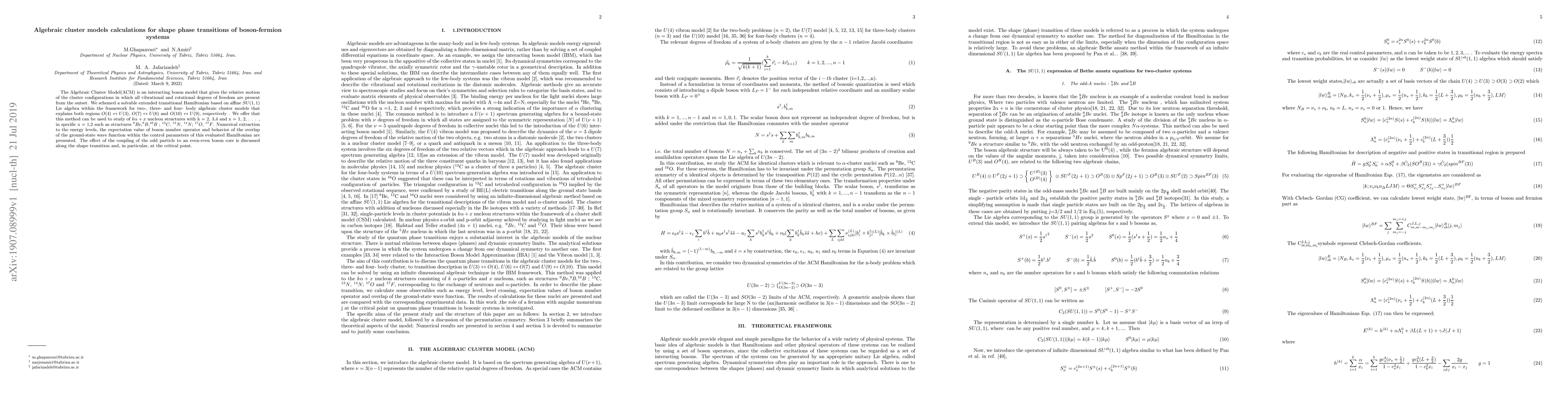Researchers develop an algebraic cluster model to study shape phase transitions in boson-fermion systems, predicting new structures such as $^{9}Be$ and $^{17}O$. The model provides insights into the effects of coupling odd particles to even-even boson cores during these transitions.