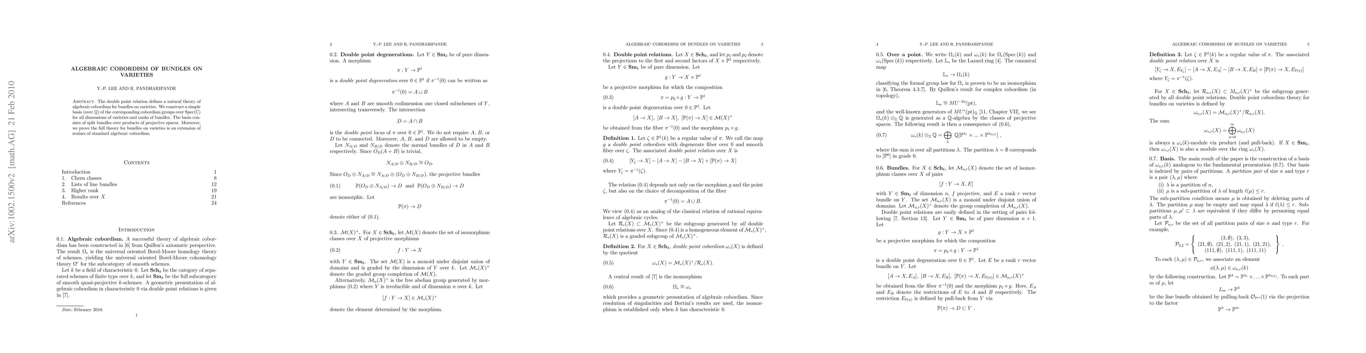 The paper constructs a basis for algebraic cobordism groups of bundles on varieties, showing they consist of split bundles over projective spaces, and proves the full theory extends standard algebraic cobordism by extension of scalars.