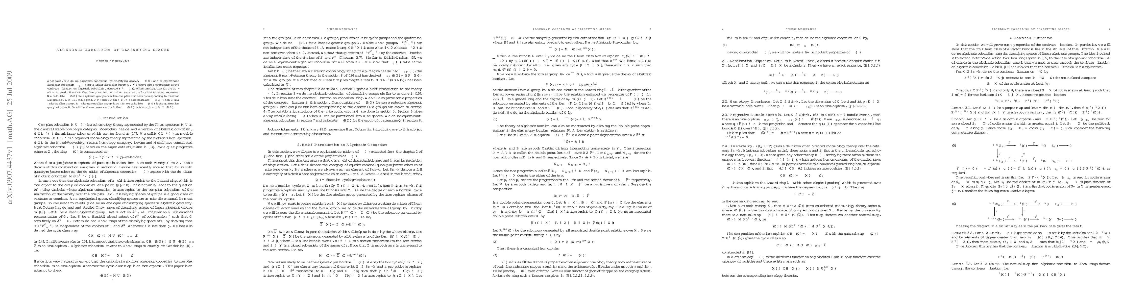 This paper introduces algebraic cobordism for classifying spaces of algebraic groups, establishing its properties and computing it for various classical and finite groups. The results demonstrate that this cobordism aligns with complex cobordism, providing new tools for understanding group actions in algebraic geometry.