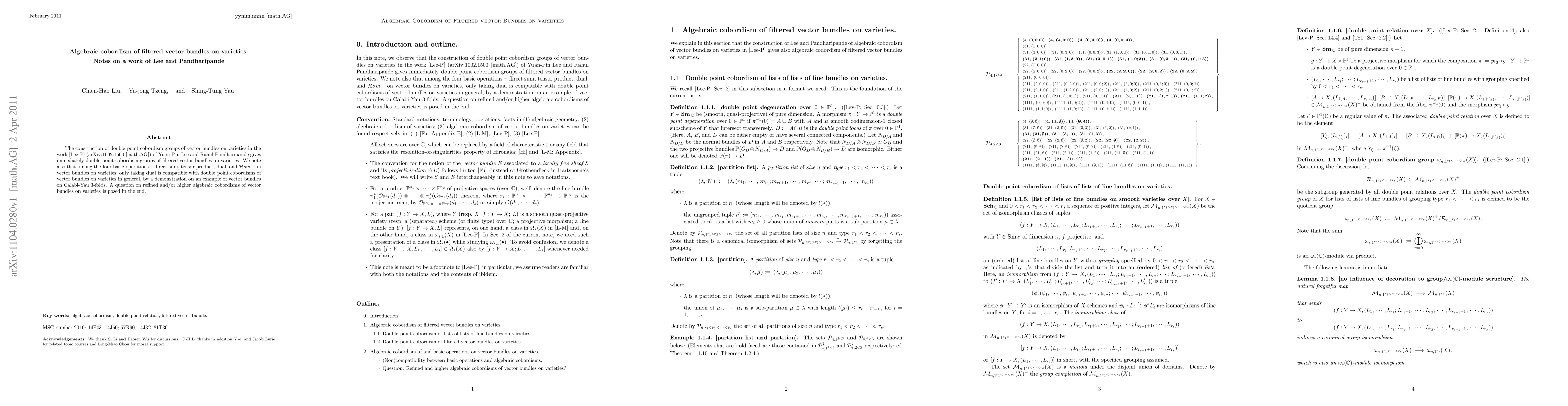 This paper summarizes Lee and Pandharipande's construction of double point cobordism groups for filtered vector bundles on varieties, highlighting that only the dual operation is generally compatible with these cobordisms, illustrated via vector bundles on Calabi-Yau 3-folds. The paper concludes with a question regarding refined and higher algebraic cobordisms.
