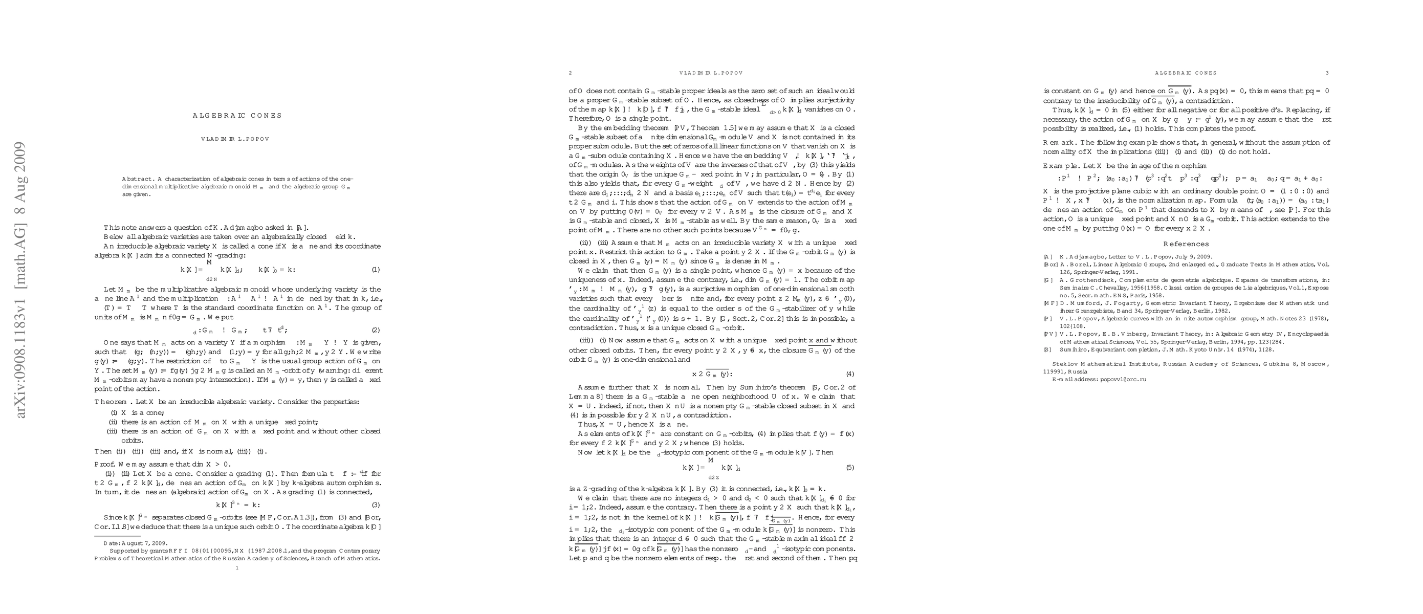 A characterization of algebraic cones in terms of actions of the one-dimensional multiplicative algebraic monoid ${\bf M}_{\rm m}$ and the algebraic group ${\bf G}_{\rm m}$ are given.
