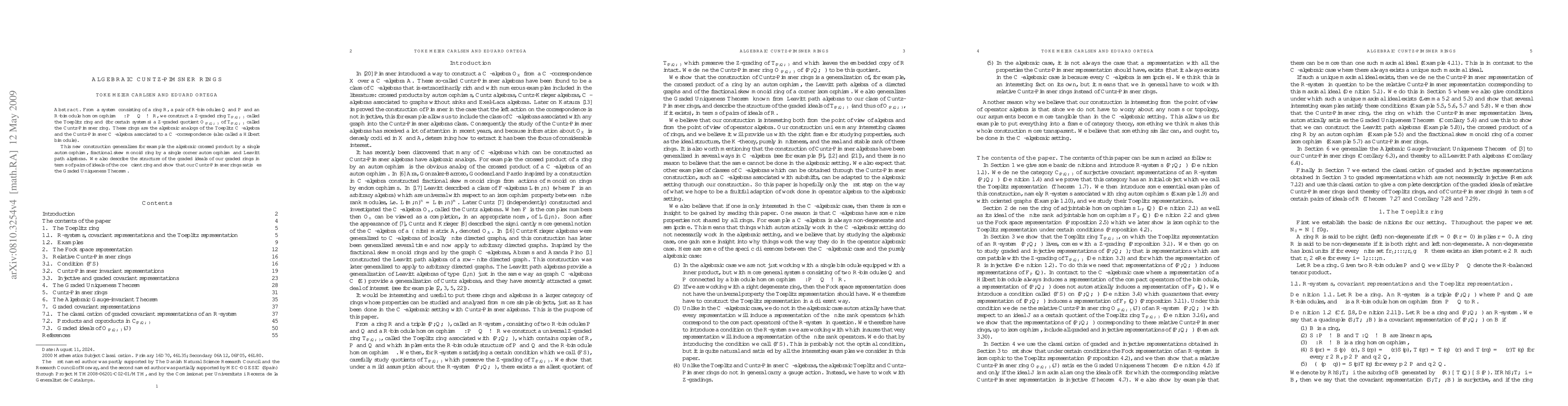 From a system consisting of a right non-degenerate ring $R$, a pair of $R$-bimodules $Q$ and $P$ and an $R$-bimodule homomorphism $\psi:P\otimes Q\longrightarrow R$ we construct a $\Z$-graded ring $\mathcal{T}_{(P,Q,\psi)}$ called the Toeplitz ring and (for certain systems) a $\Z$-graded quotient $\mathcal{O}_{(P,Q,\psi)}$ of $\mathcal{T}_{(P,Q,\psi)}$ called the Cuntz-Pimsner ring. These rings are the algebraic analogs of the Toeplitz $C^*$-algebra and the Cuntz-Pimsner $C^*$-algebra associated to a $C^*$-correspondence (also called a Hilbert bimodule). This new construction generalizes for example the algebraic crossed product by a single automorphism, corner skew Laurent polynomial ring by a single corner automorphism and Leavitt path algebras. We also describe the structure of the graded ideals of our graded rings in terms of pairs of ideals of the coefficient ring.