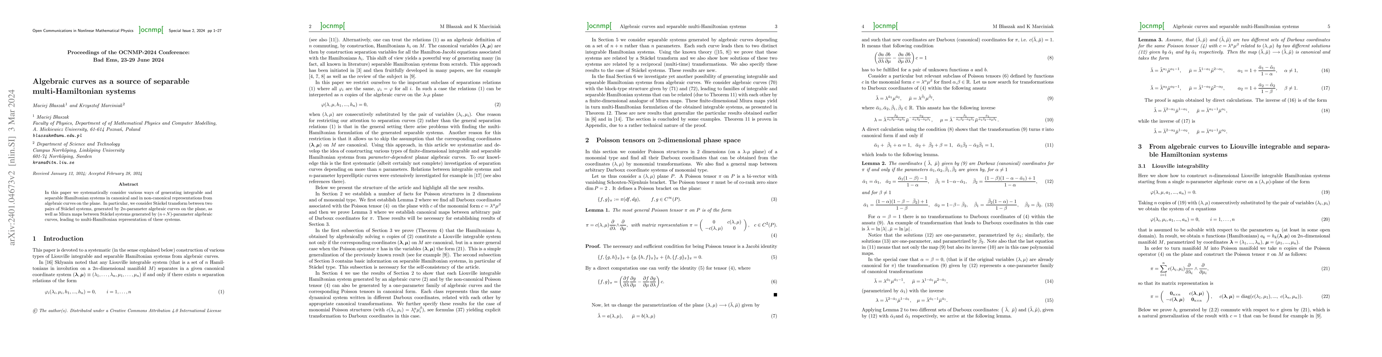 This paper explores methods to derive integrable Hamiltonian systems from algebraic curves on the plane, including Stäckel transformations and Miura maps, leading to separable multi-Hamiltonian representations of these systems. It systematically examines both canonical and non-canonical representations.