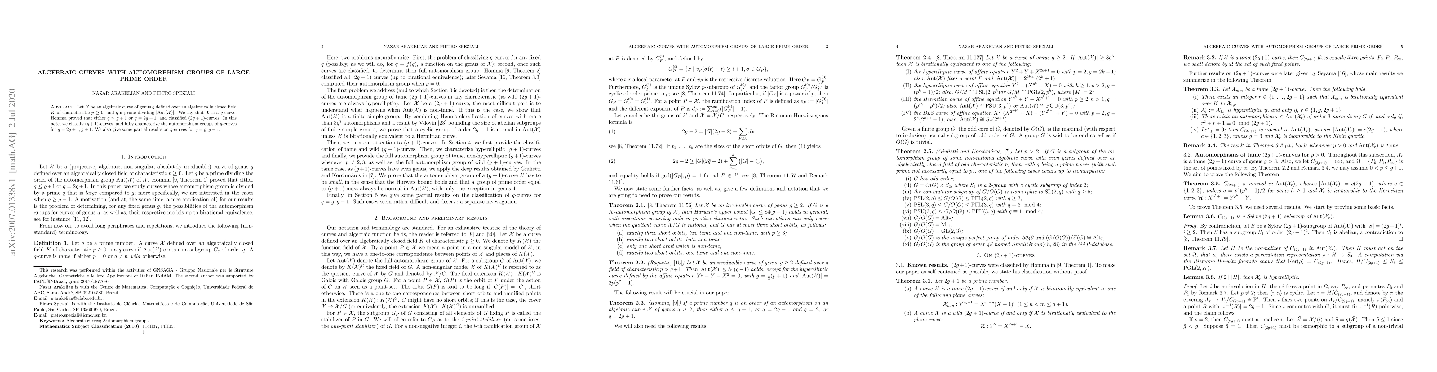 Researchers classify types of algebraic curves with large automorphism groups and provide new characterizations for certain prime orders. They build on previous work to fully understand curve properties related to prime order automorphisms.