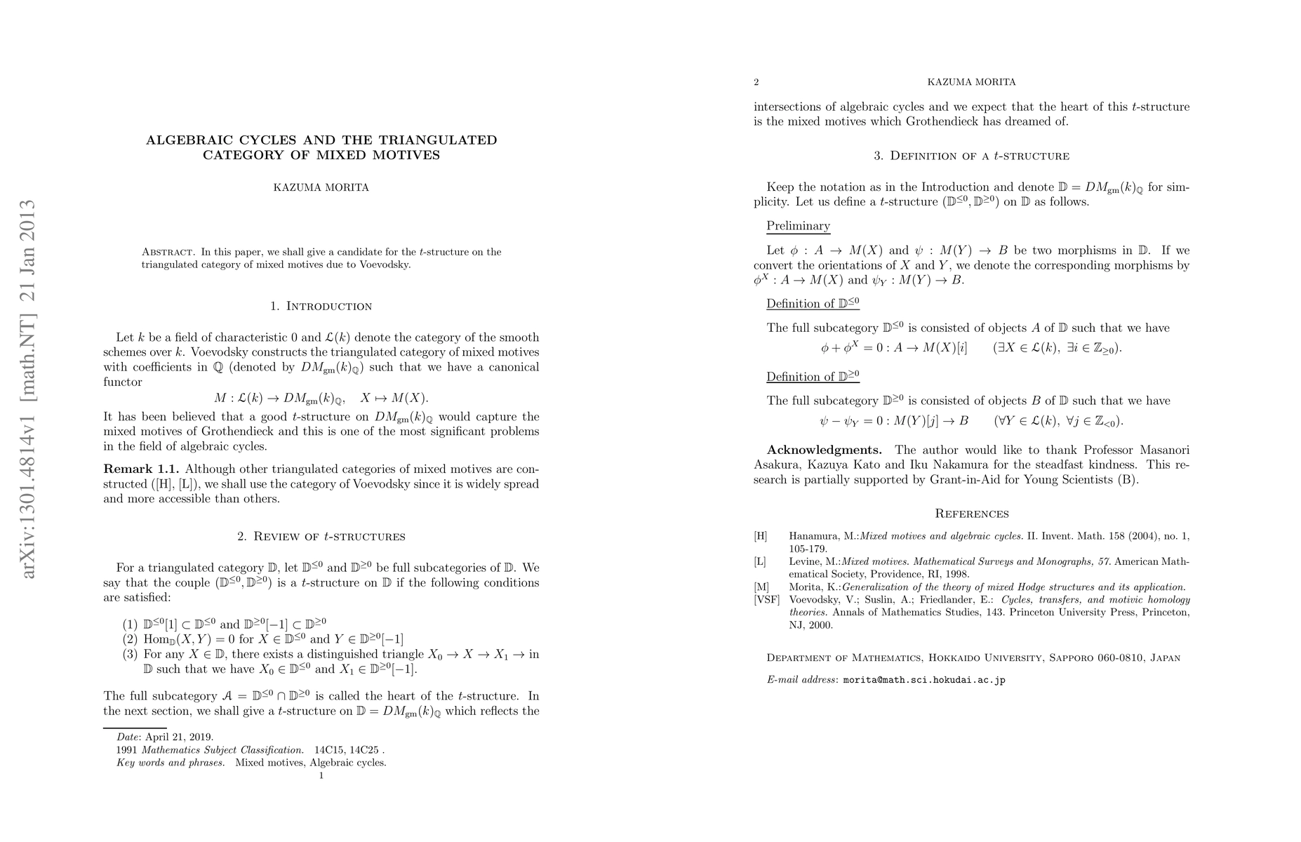 In this paper, we shall give a candidate for the t-structure on the triangulated category of mixed motives due to Voevodsky.