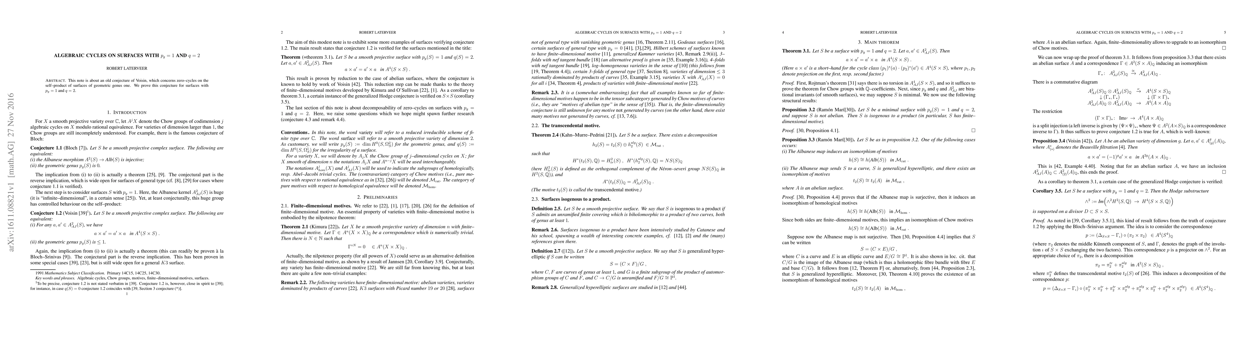 Summary: This paper proves Voisin's conjecture regarding zero-cycles on the self-product of surfaces with geometric genus one, specifically for surfaces characterized by $p_g=1$ and $q=2$. The result provides significant insight into algebraic cycles on such surfaces.