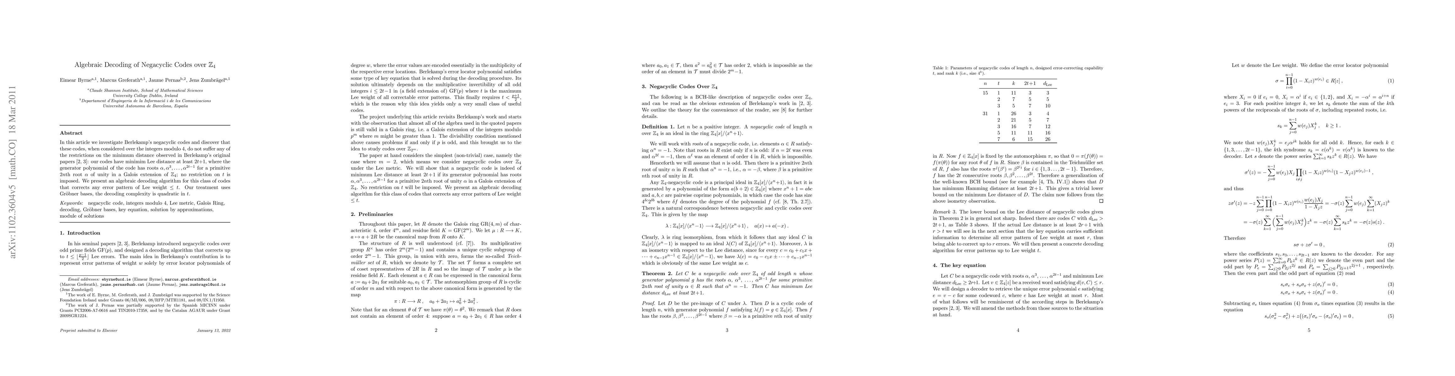 This paper presents algebraic decoding methods for negacyclic codes over Z_4, showing they maintain a minimum Lee distance of at least 2t+1. An efficient decoding algorithm utilizing Gröbner bases is introduced, capable of correcting errors up to Lee weight t, with decoding complexity quadratic in t.