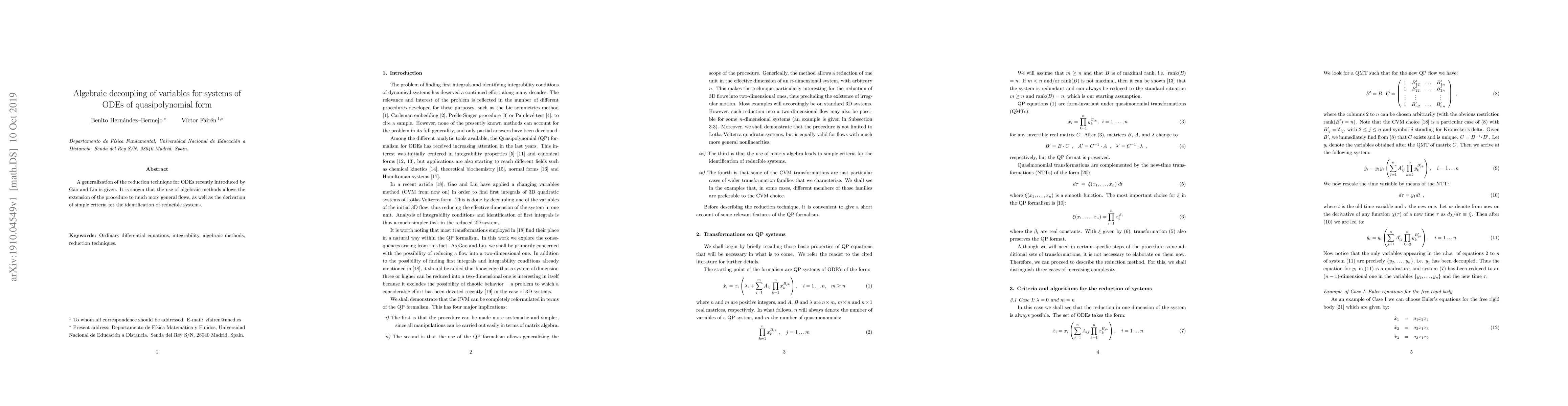 Researchers developed a new method for solving systems of ordinary differential equations (ODEs) that can handle more complex flows than previous techniques. This breakthrough allows for simpler criteria to identify reducible systems.