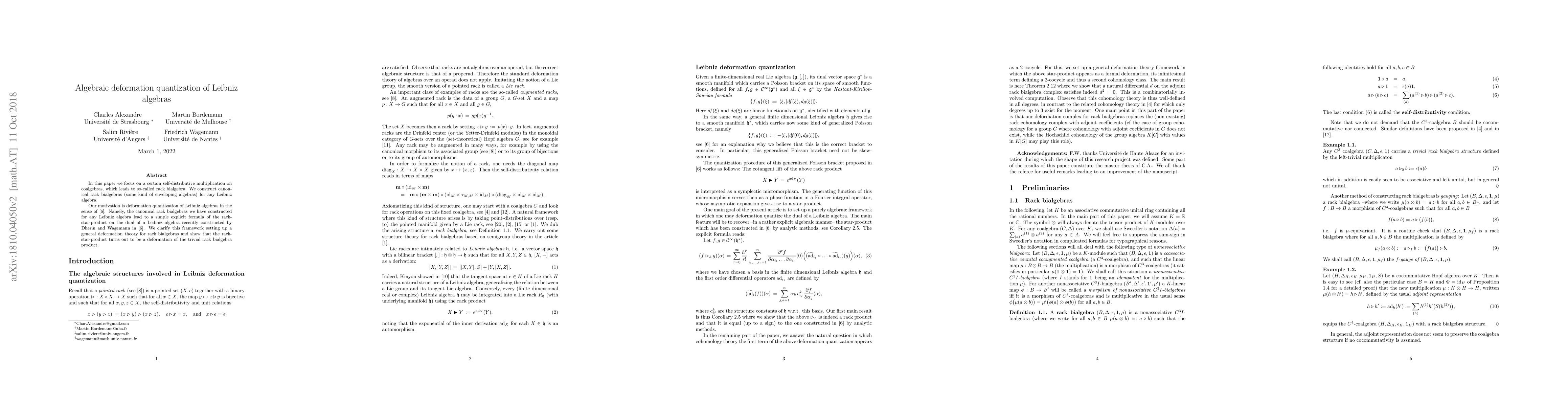 In this paper we focus on a certain self-distributive multiplication on coalgebras, which leads to so-called rack bialgebra. We construct canon-ical rack bialgebras (some kind of enveloping algebras) for any Leibniz algebra. Our motivation is deformation quantization of Leibniz algebras in the sense of [6]. Namely, the canonical rack bialgebras we have constructed for any Leibniz algebra lead to a simple explicit formula of the rack-star-product on the dual of a Leibniz algebra recently constructed by Dherin and Wagemann in [6]. We clarify this framework setting up a general deformation theory for rack bialgebras and show that the rack-star-product turns out to be a deformation of the trivial rack bialgebra product.