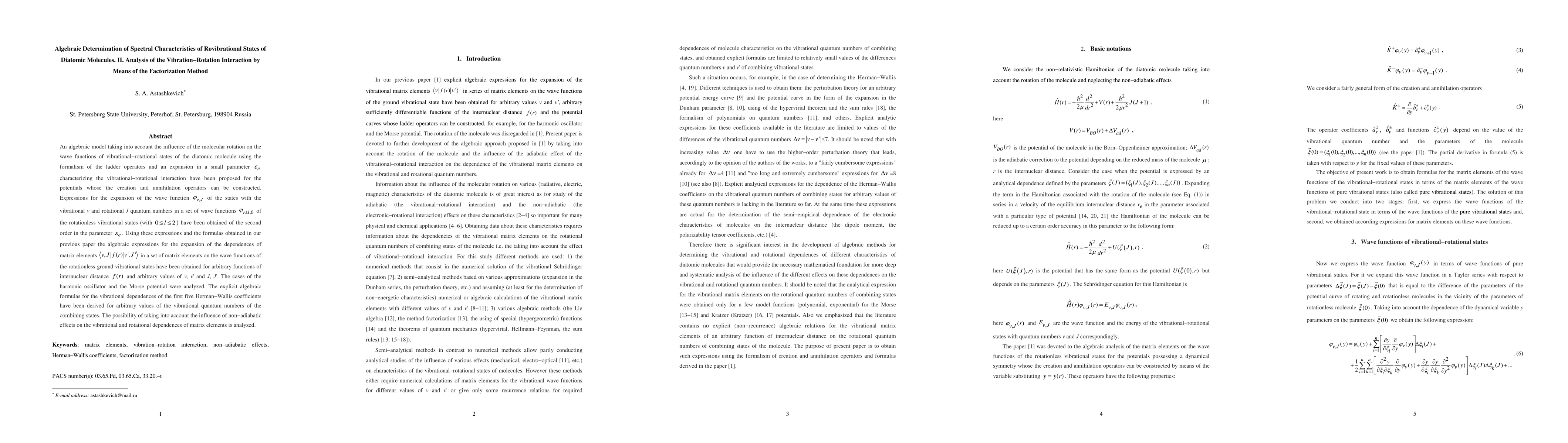 An algebraic model taking into account the influence of the molecular rotation on the wave functions of vibrational-rotational states of the diatomic molecule using the formalism of the ladder operators and an expansion in a small parameter characterizing the vibrational-rotational interaction have been proposed for the potentials whose the creation and annihilation operators can be constructed. Expressions for the expansion of the wave function of the vibrational-rotational states in a set of wave functions of the rotationless vibrational states have been obtained of the second order in the parameter. Using these expressions and the formulas obtained in our previous paper the algebraic expressions for the expansion of the dependences of matrix elements in a set of matrix elements on the wave functions of the rotationless ground vibrational states have been obtained for arbitrary functions of internuclear distance and arbitrary values of the vibrational and rotational quantum numbers of the combined states. The cases of the harmonic oscillator and the Morse potential were analyzed. The explicit algebraic formulas for the vibrational dependences of the first five Herman-Wallis coefficients have been derived for arbitrary values of the vibrational quantum numbers of the combining states. The possibility of taking into account the influence of non-adiabatic effects on the vibrational and rotational dependences of matrix elements is considered.