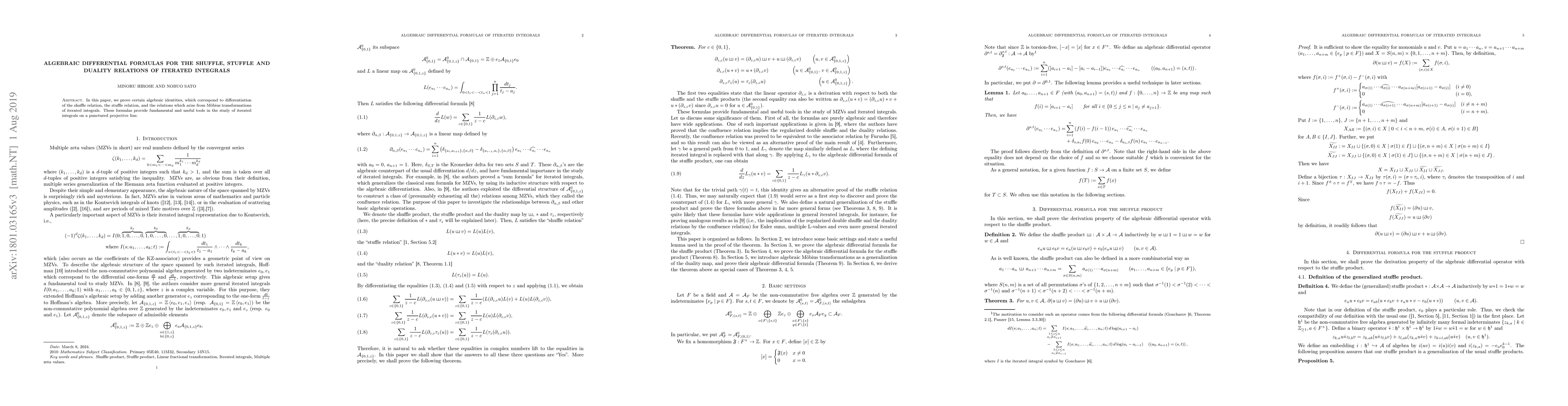 This paper establishes algebraic identities for the shuffle, stuffle, and duality relations of iterated integrals, offering essential tools for studying iterated integrals on a punctured projective line. These identities facilitate deeper understanding of differentiation processes in the context of these relations.