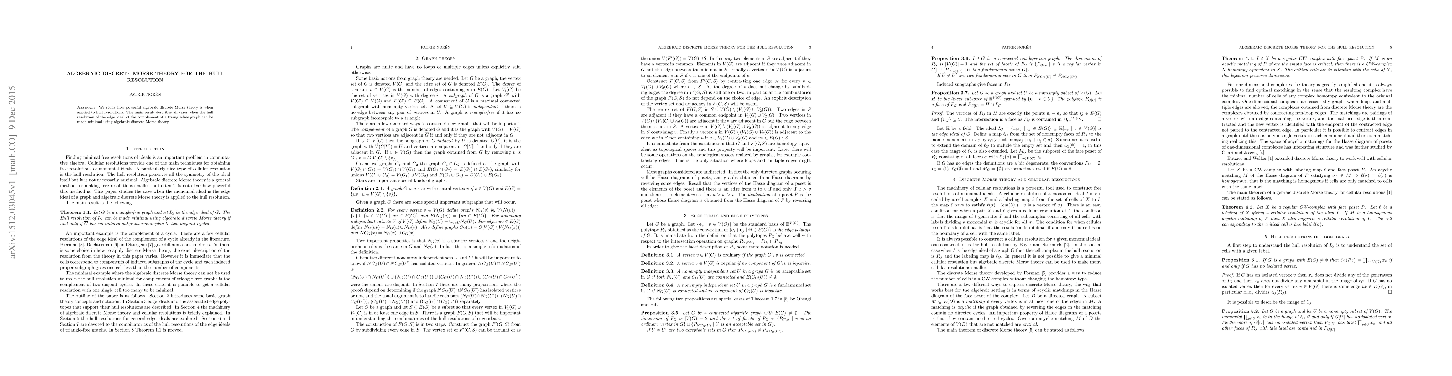 The paper presents a comprehensive application of algebraic discrete Morse theory to hull resolutions, providing a systematic method for minimizing such resolutions in the context of triangle-free graphs.