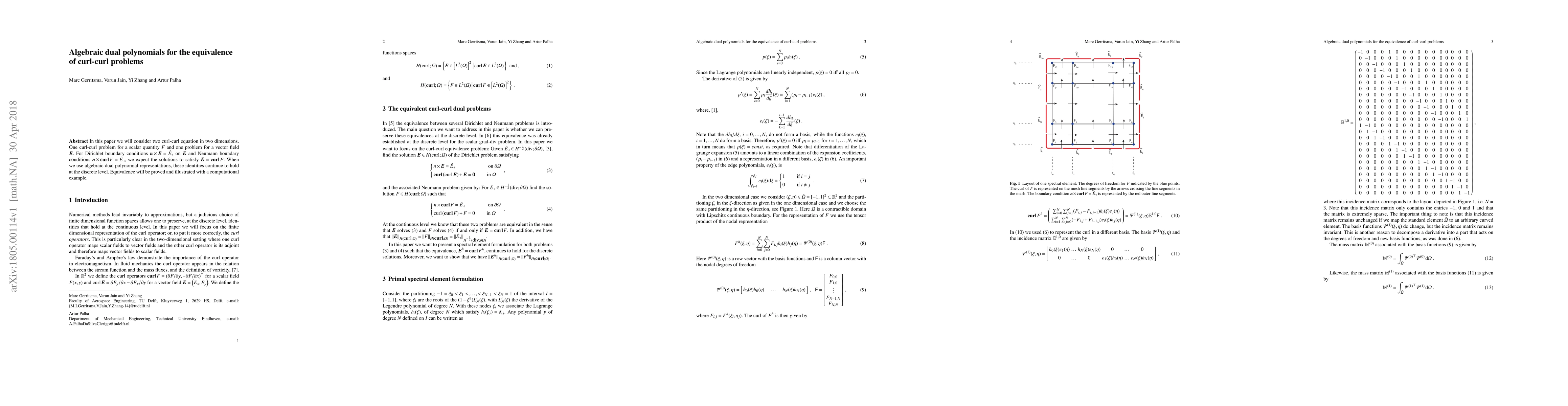 In this paper we will consider two curl-curl equation in two dimensions. One curl-curl problem for a scalar quantity $F$ and one problem for a vector field $\bf{E}$. For Dirichlet boundary conditions $\bf{n} \times \bf{E} =$ $ \hat{E}_{\dashv}$ on $\bf{E}$ and Neumann boundary conditions $\bf{n} \times \mbox{curl}$ $F=\hat{E}_{\dashv}$, we expect the solutions to satisfy $\bf{E}=\mbox{curl}$ $F$. When we use algebraic dual polynomial representations, these identities continue to hold at the discrete level. Equivalence will be proved and illustrated with a computational example.