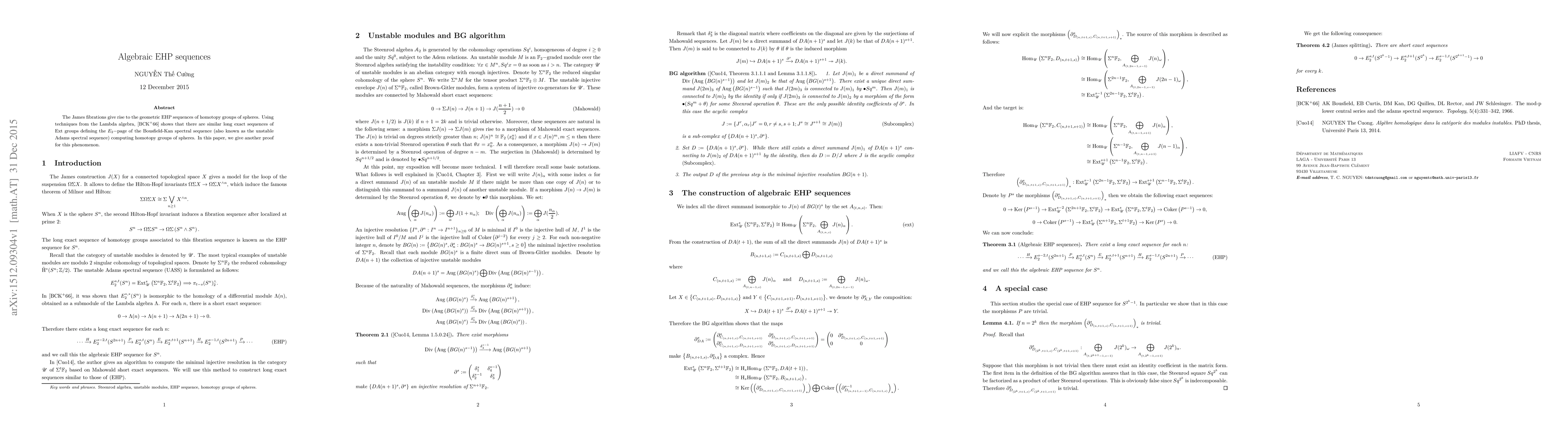 The James fibrations give rise to the geometric EHP sequences of homotopy groups of spheres. Using techniques from the Lambda algebra, \cite{BCKQRS66} shows that there are similar long exact sequences of Ext groups defining the $E_{2}-$page of the Bousfield-Kan spectral sequence (also known as the unstable Adams spectral sequence) computing homotopy groups of spheres. In this paper, we give another proof for this phenomenon.