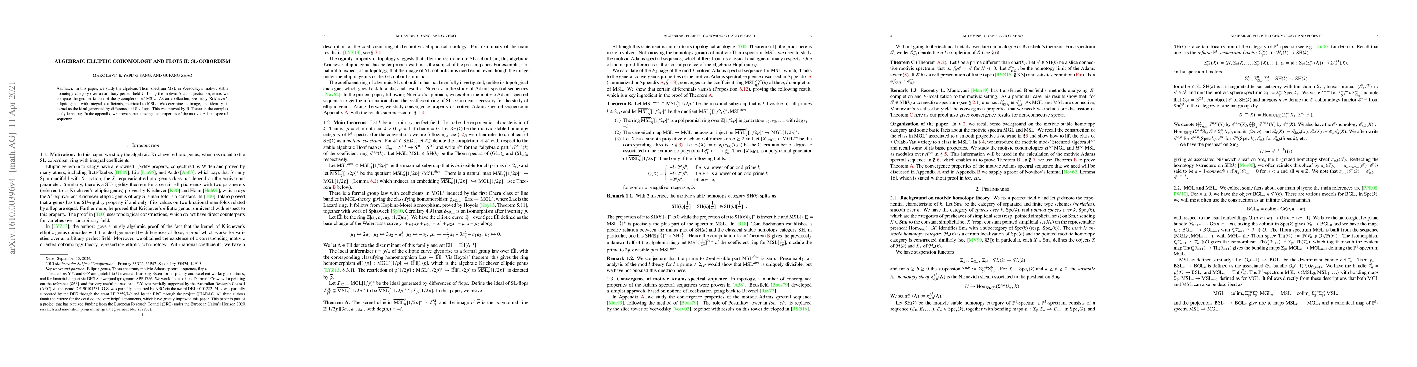 The work combines advanced concepts from algebraic geometry, motivic homotopy theory, and elliptic cohomology, offering new perspectives on how these areas interact, particularly in the context of $SL$-cobordism and flops.