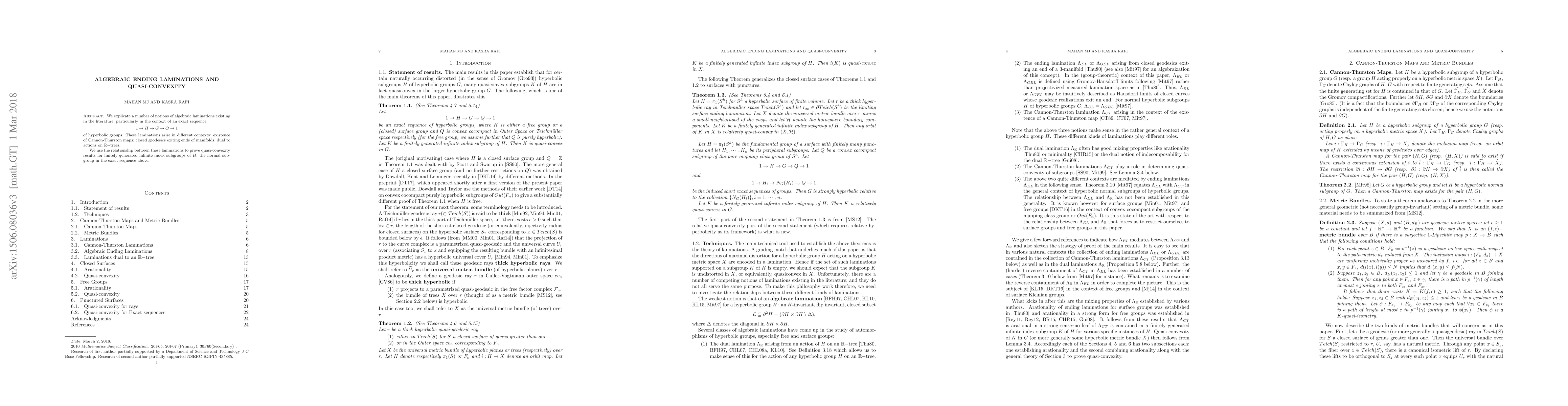 This paper explores various algebraic laminations in hyperbolic groups, particularly within the exact sequence $$1\to H\to G \to Q \to 1$$, and uses these to demonstrate quasiconvexity for certain subgroups of $$H$$. The study connects these laminations to Cannon-Thurston maps and actions on $$\R-$$trees.
