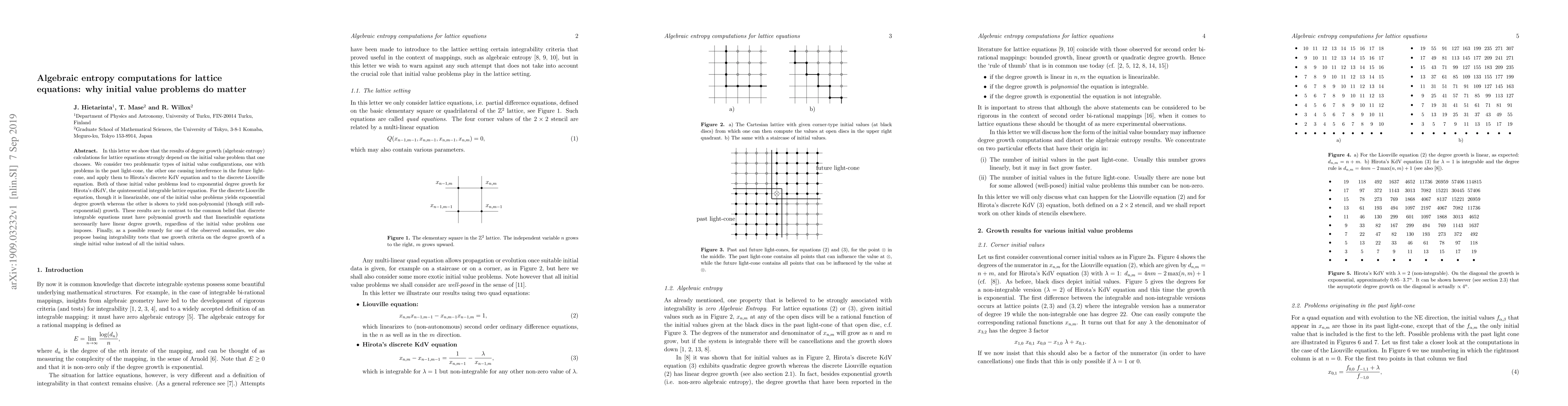 The paper presents novel findings on how initial value problems influence algebraic entropy computations in lattice equations, challenging existing beliefs about growth rates in integrable systems.
