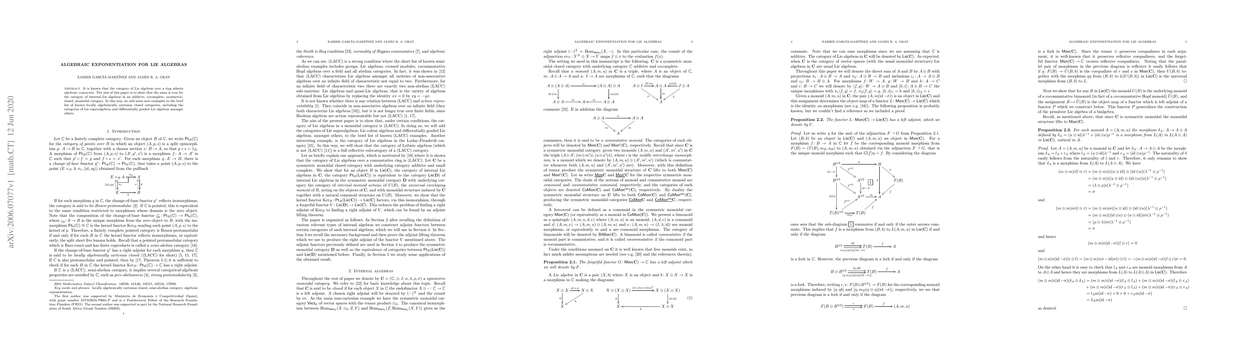 It is known that the category of Lie algebras over a ring admits algebraic exponents. The aim of this paper is to show that the same is true for the category of internal Lie algebras in an additive, cocomplete, symmetric, closed, monoidal category. In this way, we add some new examples to the brief list of known locally algebraically cartesian closed categories, including the categories of Lie superalgebras and differentially graded Lie algebras amongst others.