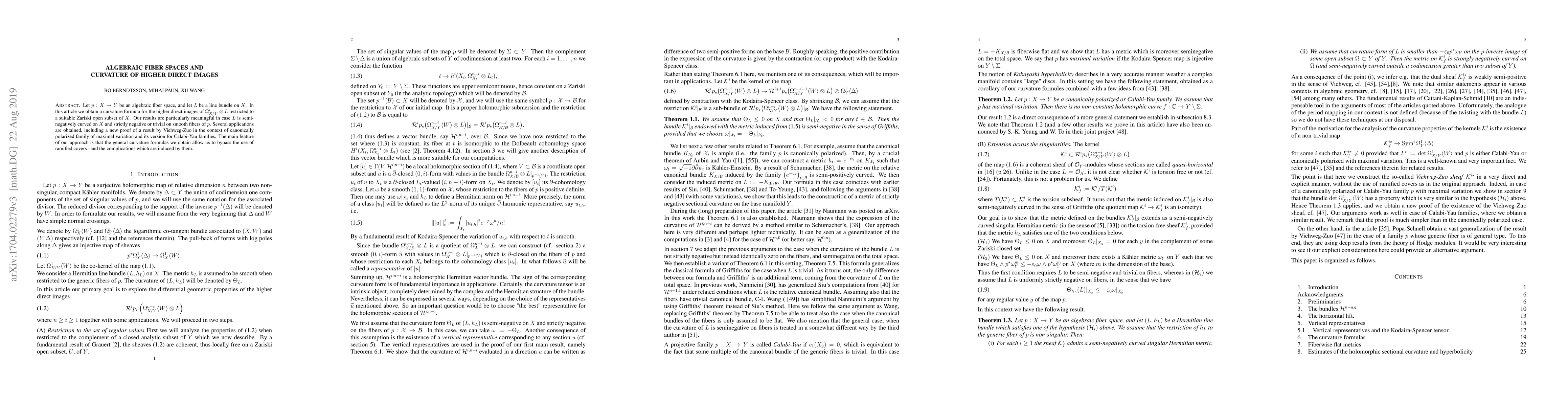 This paper explores the differential geometric properties of higher direct images of exterior powers of the sheaf of relative differentials, obtaining explicit curvature formulas under certain line bundle conditions. Applications include proving Viehweg-Zuo's result in the context of canonically polarized families of maximal variation.