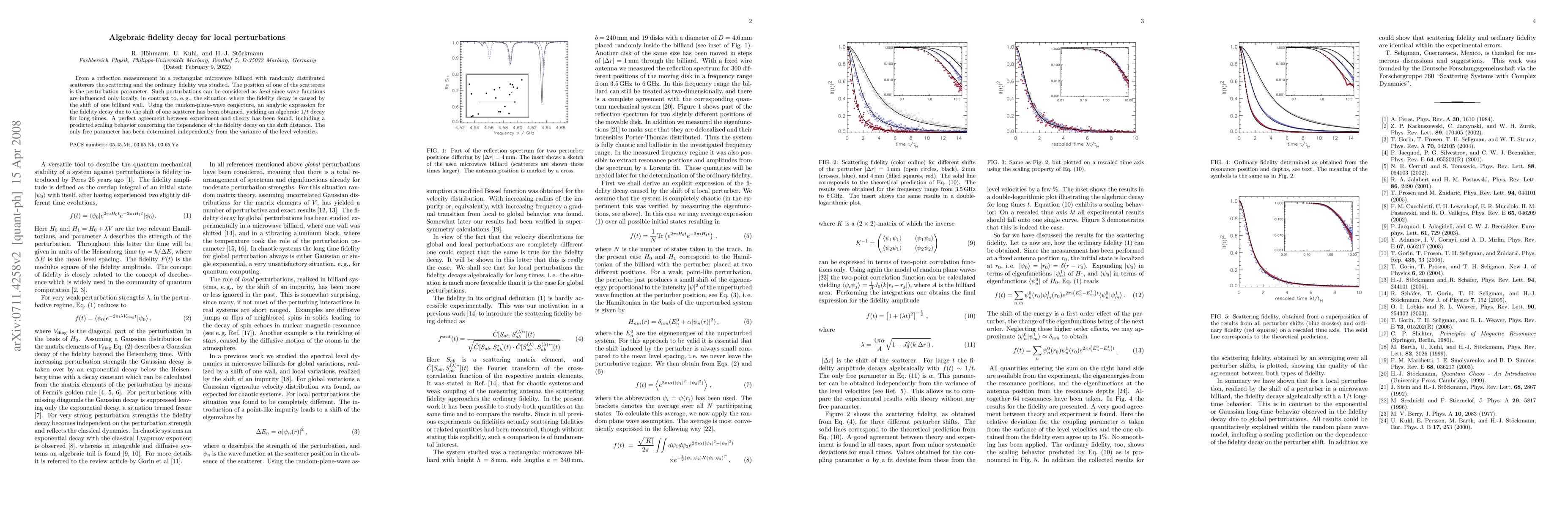 This paper investigates the algebraic fidelity decay resulting from local perturbations in a microwave billiard, specifically the shift of a single scatterer. The study confirms an analytic expression for this decay, showing a $1/t$ behavior over long times, with experimental results perfectly aligning with theoretical predictions.