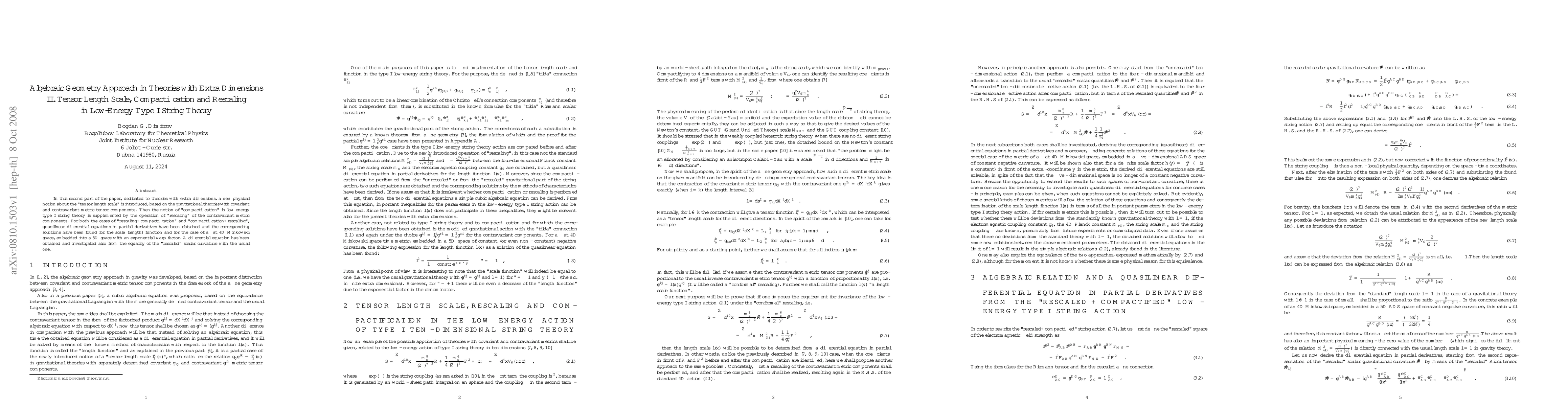 In this second part of the paper, dedicated to theories with extra dimensions, a new physical notion about the "tensor length scale" is introduced, based on the gravitational theories with covariant and contravariant metric tensor components. Then the notion of "compactification" in low energy type I string theory is supplemented by the operation of "rescaling" of the contravariant metric components. For both the cases of "rescaling + compactification" and "compactification + rescaling", quasilinear differential equations in partial derivatives have been obtained and the corresponding solutions have been found for the scale (length) function and for the case of a flat 4D Minkowski space, embedded into a 5D space with an exponential warp factor. A differential equation has been obtained and investigated also from the equality of the "rescaled" scalar curvature with the usual one.