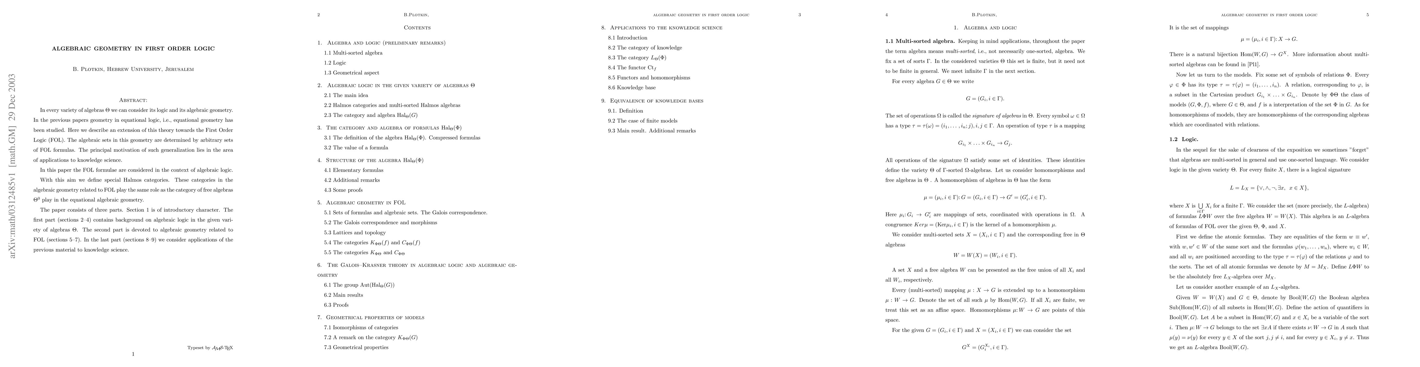 This paper extends algebraic geometry from equational logic to First Order Logic (FOL), enabling applications in knowledge science by defining Halmos categories for FOL formulae.