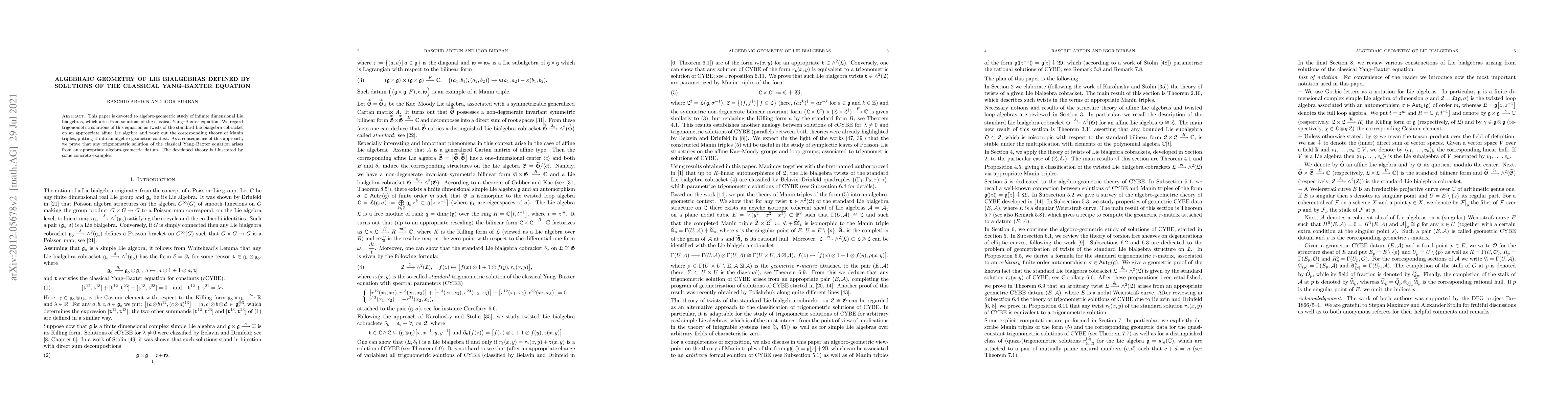 This paper explores the algebraic geometry of infinite-dimensional Lie bialgebras derived from solutions of the classical Yang-Baxter equation, establishing a theory of Manin triples in an algebro-geometric context, and proving that trigonometric solutions of the equation arise from specific algebro-geometric data. Examples illustrate the developed theory.