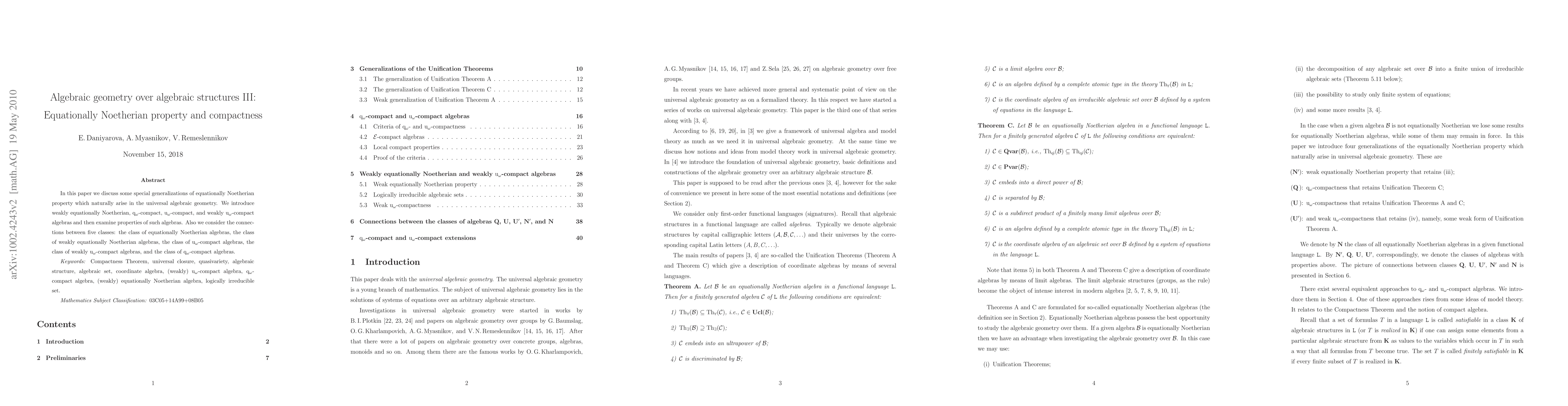 This paper explores extensions of the equationally Noetherian property in universal algebraic geometry, introducing new classes of algebras such as weakly equationally Noetherian and various compactness classes. It examines the relationships among these classes and their properties.