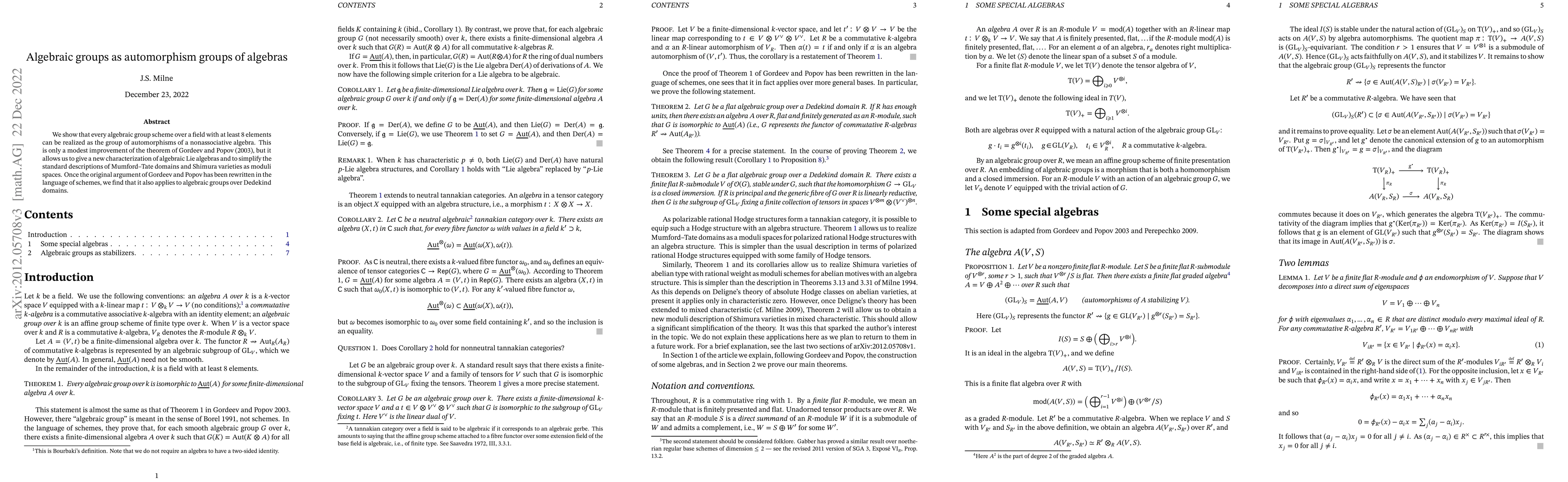 This paper demonstrates that every algebraic group scheme over a field with at least 8 elements can be realized as the automorphism group of a nonassociative algebra, providing a new characterization of algebraic Lie algebras and simplifying descriptions of Mumford-Tate domains and Shimura varieties.
