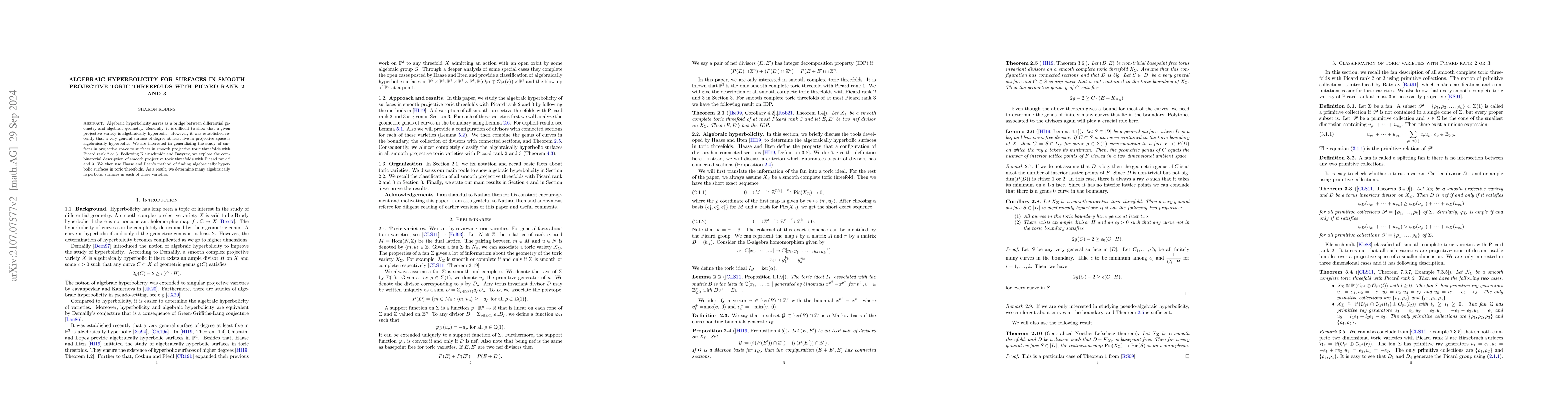Algebraic hyperbolicity serves as a bridge between differential geometry and algebraic geometry. Generally, it is difficult to show that a given projective variety is algebraically hyperbolic. However, it was established recently that a very general surface of degree at least five in projective space is algebraically hyperbolic. We are interested in generalizing the study of surfaces in projective space to surfaces in smooth projective toric threefolds with Picard rank 2 or 3. Following Kleinschmidt and Batyrev, we explore the combinatorial description of smooth projective toric threefolds with Picard rank 2 and 3. We then use Haase and Ilten's method of finding algebraically hyperbolic surfaces in toric threefolds. As a result, we determine many algebraically hyperbolic surfaces in each of these varieties.