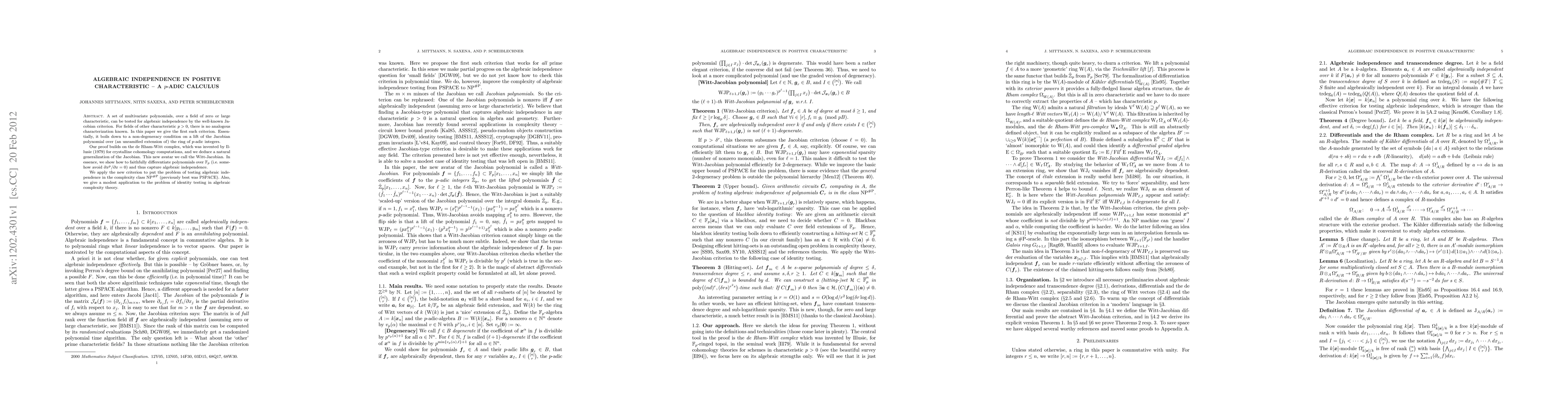 Researchers developed a criterion to test algebraic independence in positive characteristic fields, enabling polynomial differentiation and capturing independence; this breakthrough solves the problem of testing algebraic independence in NP^#P complexity class.