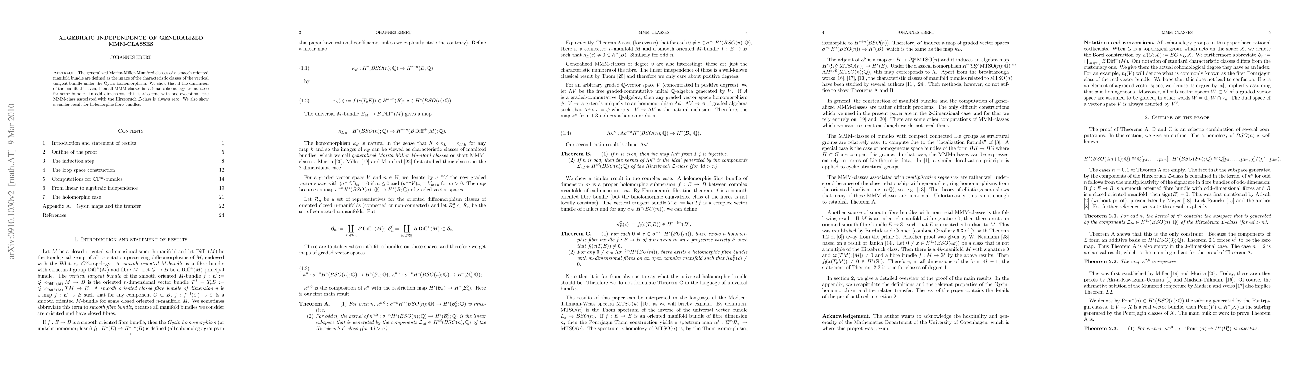 The generalized Morita-Miller-Mumford classes of a smooth oriented manifold bundle are defined as the image of the characteristic classes of the vertical tangent bundle under the Gysin homomorphism. We show that if the dimension of the manifold is even, then all MMM-classes in rational cohomology are nonzero for some bundle. In odd dimensions, this is also true with one exception: the MMM-class associated with the Hirzebruch $\cL$-class is always zero. We also show a similar result for holomorphic fibre bundles.