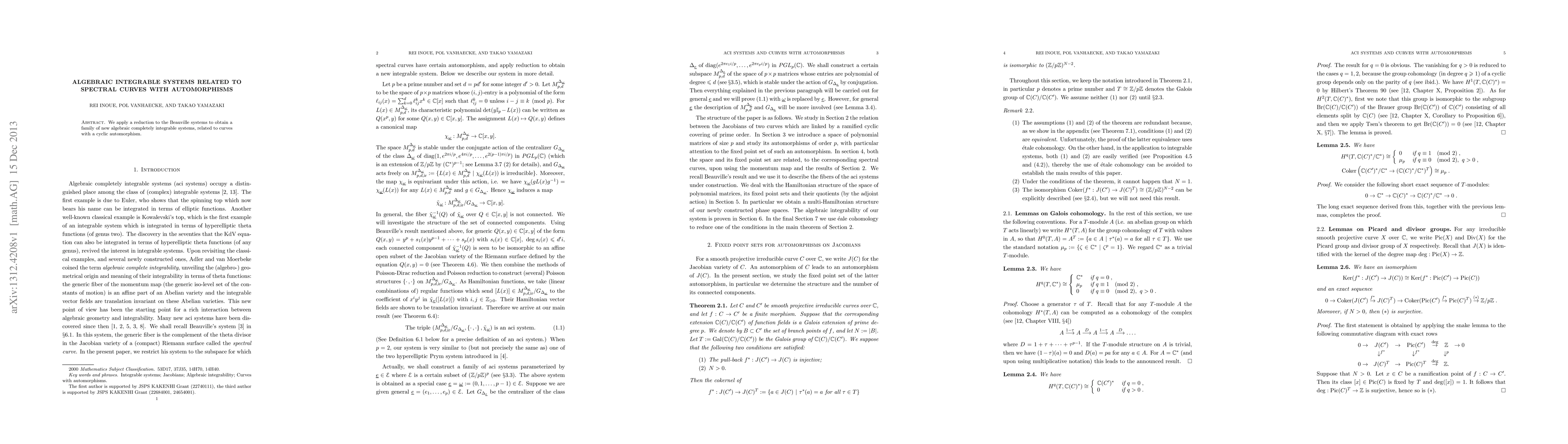 Summary: This paper introduces a novel family of algebraic integrable systems derived from Beauville systems, linked to spectral curves possessing cyclic automorphisms. The methodology provides new insights into the structure of these integrable systems.
