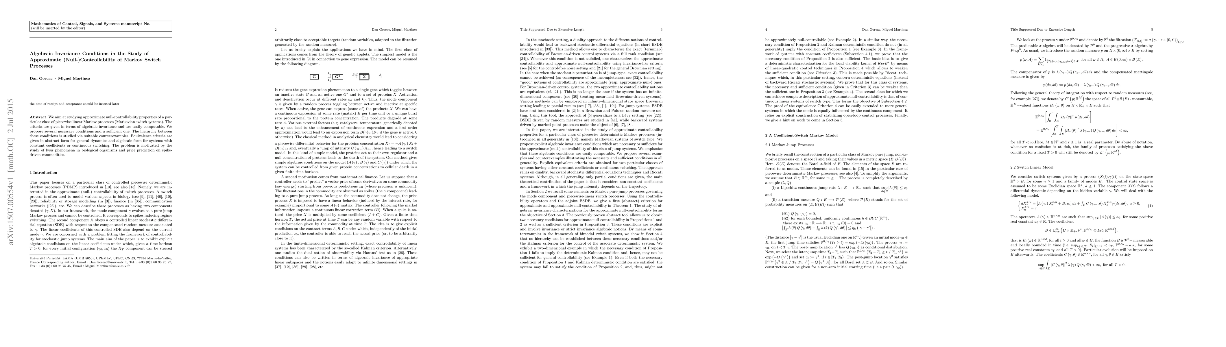We aim at studying approximate null-controllability properties of a particular class of piecewise linear Markov processes (Markovian switch systems). The criteria are given in terms of algebraic invariance and are easily computable. We propose several necessary conditions and a sufficient one. The hierarchy between these conditions is studied via suitable counterexamples. Equivalence criteria are given in abstract form for general dynamics and algebraic form for systems with constant coefficients or continuous switching. The problem is motivated by the study of lysis phenomena in biological organisms and price prediction on spike-driven commodities.