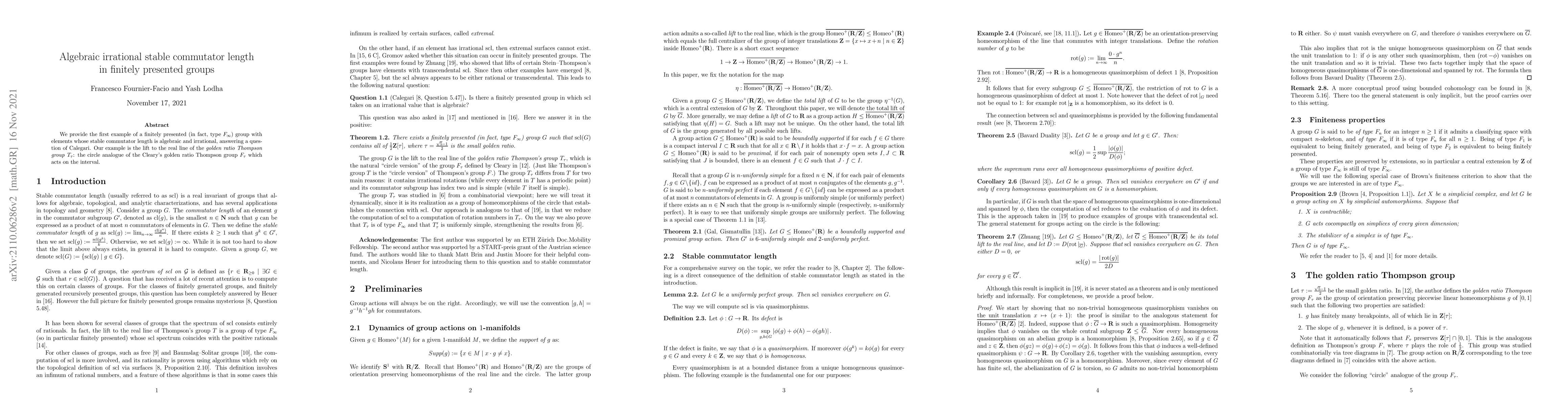 We provide the first example of a finitely presented (in fact, type $F_\infty$) group with elements whose stable commutator length is algebraic and irrational, answering a question of Calegari. Our example is the lift to the real line of the \emph{golden ratio Thompson group} $T_\tau$: the circle analogue of the Cleary's golden ratio Thompson group $F_\tau$ which acts on the interval.
