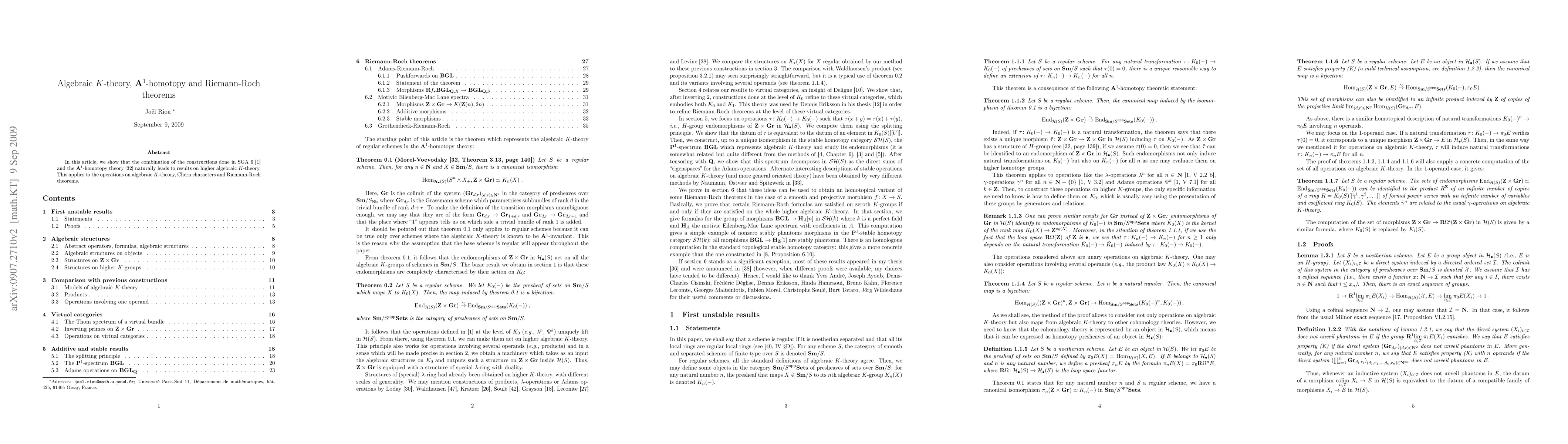 Summary: This paper demonstrates how combining SGA 6 constructions with A^1-homotopy theory yields advancements in higher algebraic K-theory, particularly regarding operations, Chern characters, and Riemann-Roch theorems.